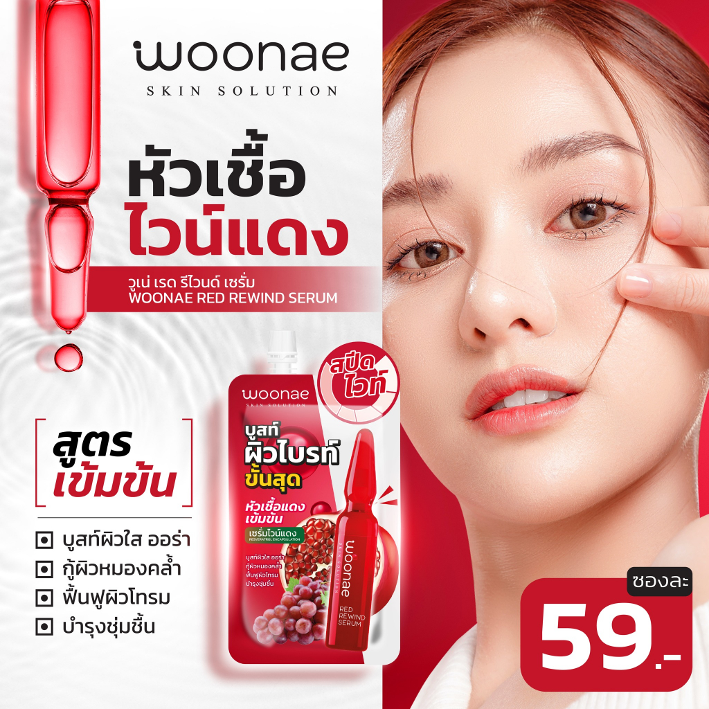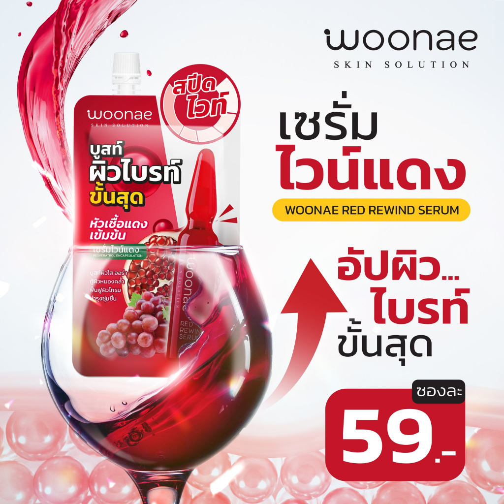 (1ซอง) Woonae วูเน่ เรด รีไวนด์ เซรั่ม #บูสผิวไบรท์ขั้นสุด เซรั่มไวน์แดง Red Rewind Serum