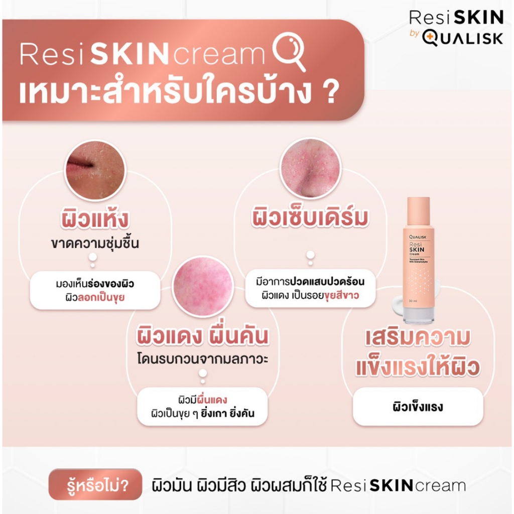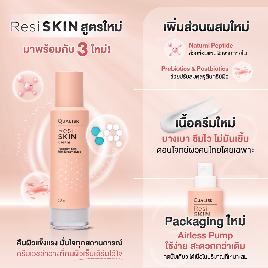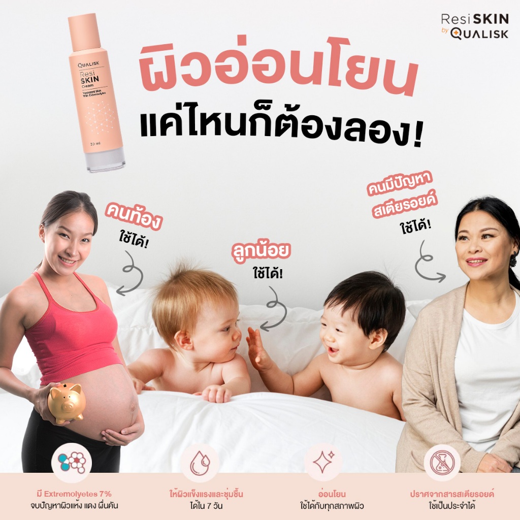 3 แถม 2 | ResiSKIN Cream 30ml แพ็ค 3 ขวด แถม 5ml 2 หลอด| ครีมผิวแพ้ง่ายแดง คัน แห้ง ฟื้นฟูผิวแข็งแรง