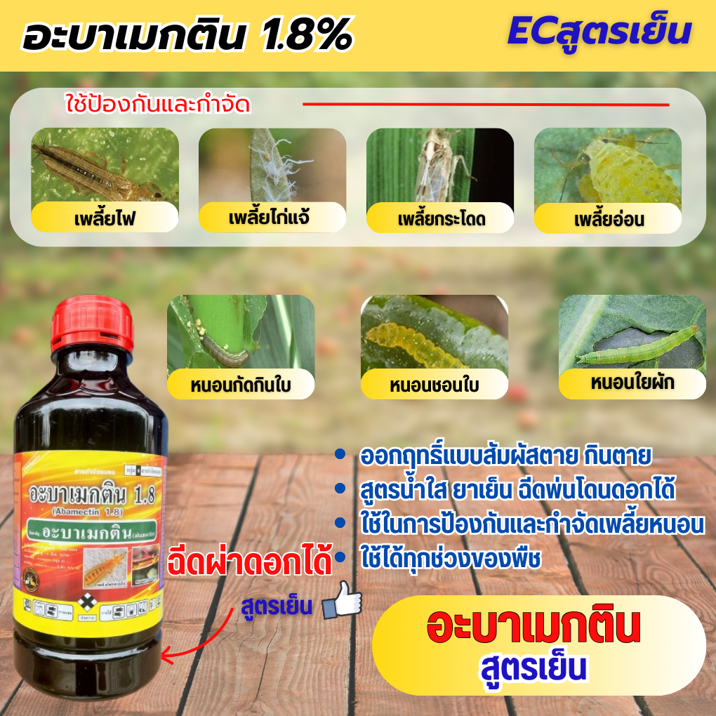 อะบาเมกติน BM ขนาด 1 ลิตร สูตรเย็น น้ำใส กำจัดหนอนชอนใบ เพลี้ยไฟ หนอนใยผัก อะบา
