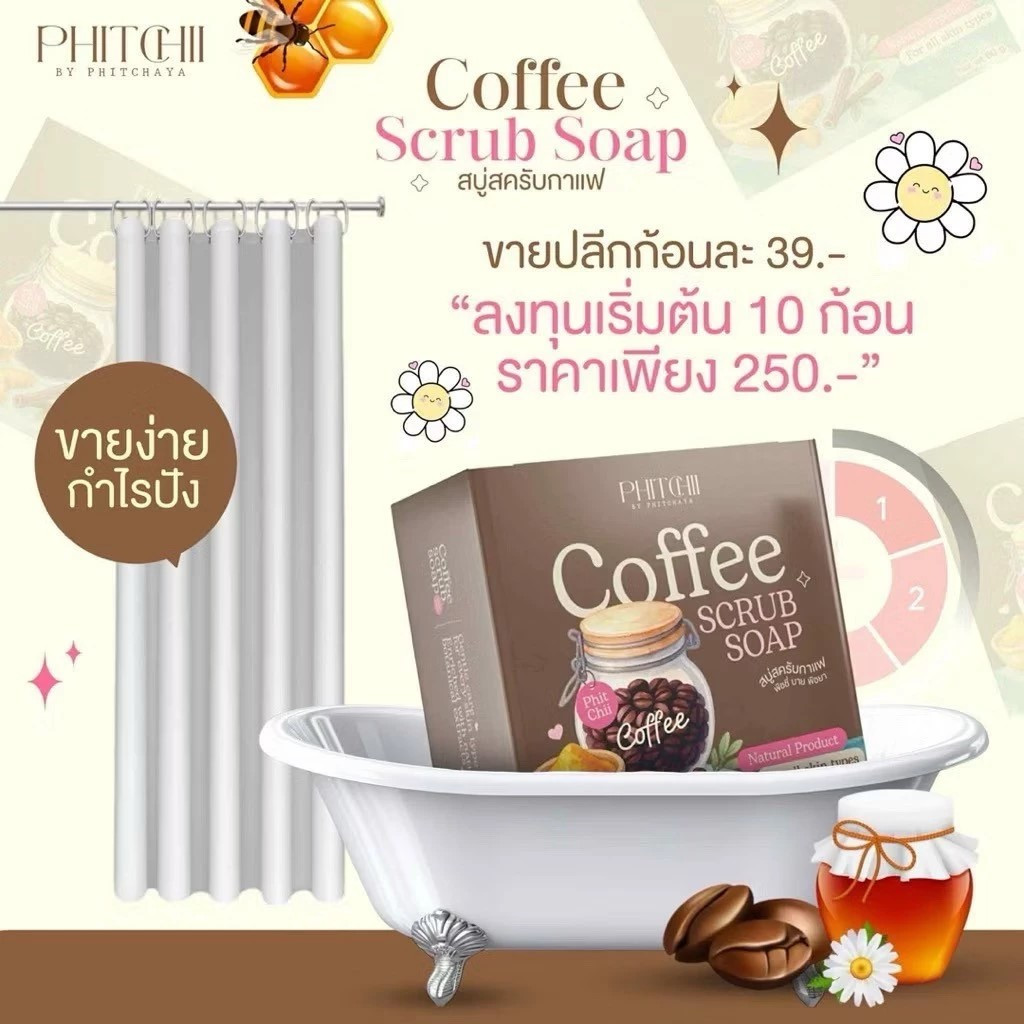 สบู่พิชชี่ กาแฟ สบู่สครับ ก้อนนิ่ม ไม่บาดผิว สบู่สครับ พิชชี่ สบู่สครับกาแฟ 50-60 กรัม
