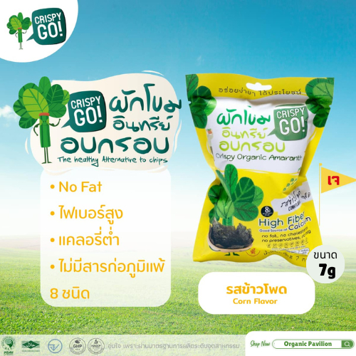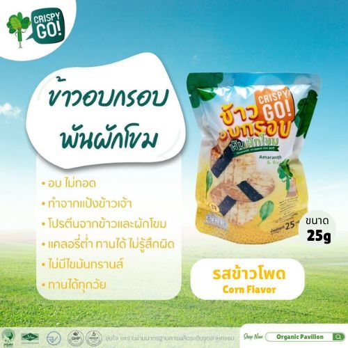 Crispy GO คริสปี้โก Roasted Organic Amaranth ขนมผักโขมอินทรีย์อบกรอบ