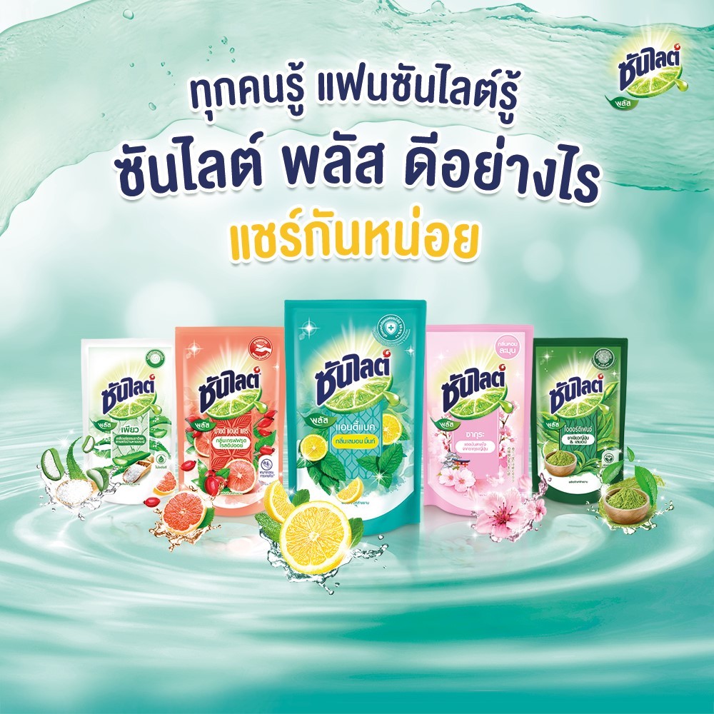 Sunlight Plus ซันไลต์ พลัส น้ำยาล้างจาน แอนตี้แบคทีเรีย มีให้เลือก 8 สูตร