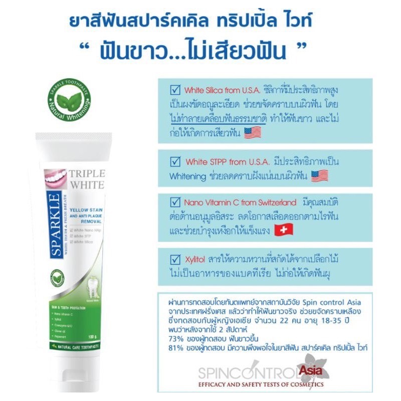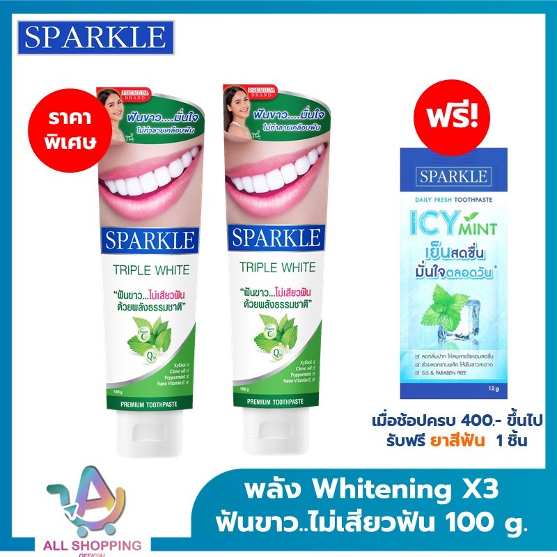 (แพค 2) SPARKLE ยาสีฟัน ฟันขาว..ไม่เสียวฟัน 100 กรัม สูตร Triple White SK0130 ด้วยพลังธรรมชาติ สปาร์คเคิล