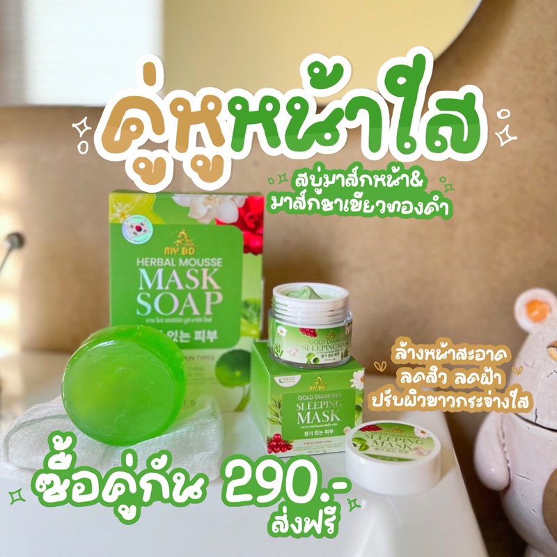 สบู่มาร์คหน้าปรางทิพย์ 🌿 สบู่มายด์โบ 🌿สลิปปิ้งมาร์ค มาร์คชาเขียวทองคำ ลดสิว ฝ้า หน้าขาว my bo กันแดด สบู่ปราง เซรั่มชานี