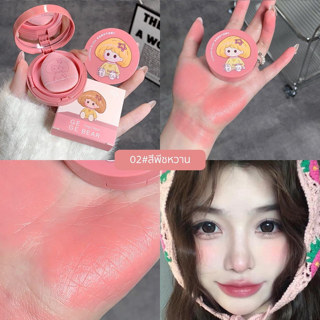 บลัชออนแอร์คุชชั่น blush โทนสีชมพู สีสวย บรัชออน ปัดแก้ม เนื้อดี สีสวย ติทนนาน กันน้ำ พร้อมกระจกและพัฟแป้งสุดน่ารัก