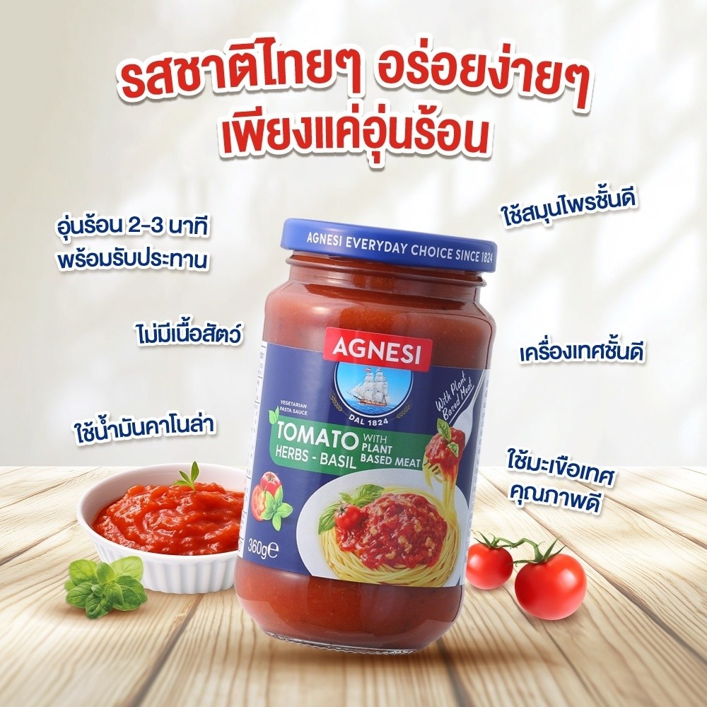 พร้อมส่ง Agnesi Pasta sauce+Plant based-Basil 360g.ซอสพาสต้า+เนื้อจากพืช รสโหระพา