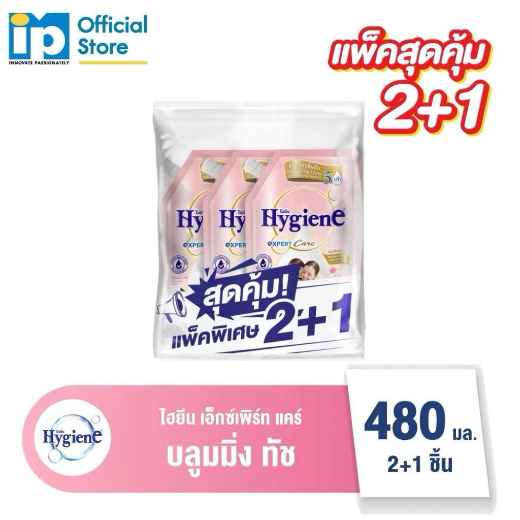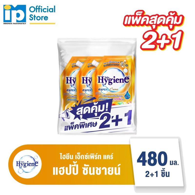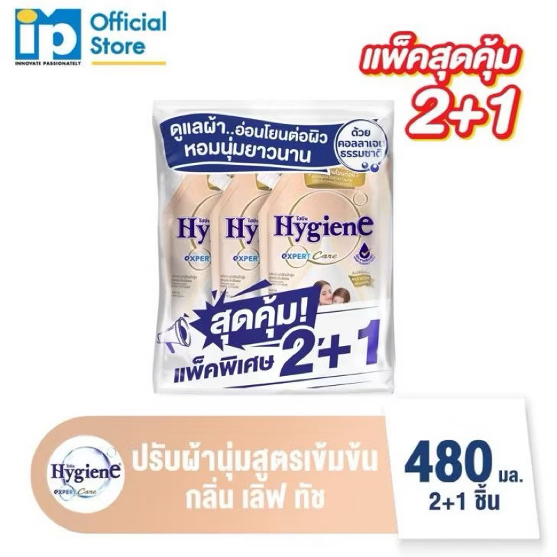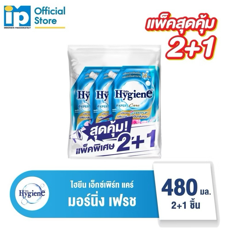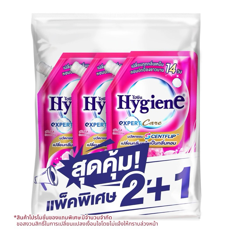 ไฮยีน Expert Care น้ำยาปรับผ้านุ่ม สูตรเข้มข้นพิเศษ (แพคพิเศษ 2+1) 470-480 มล.
