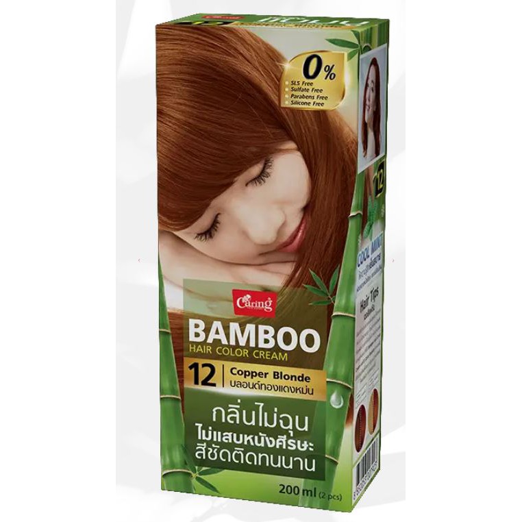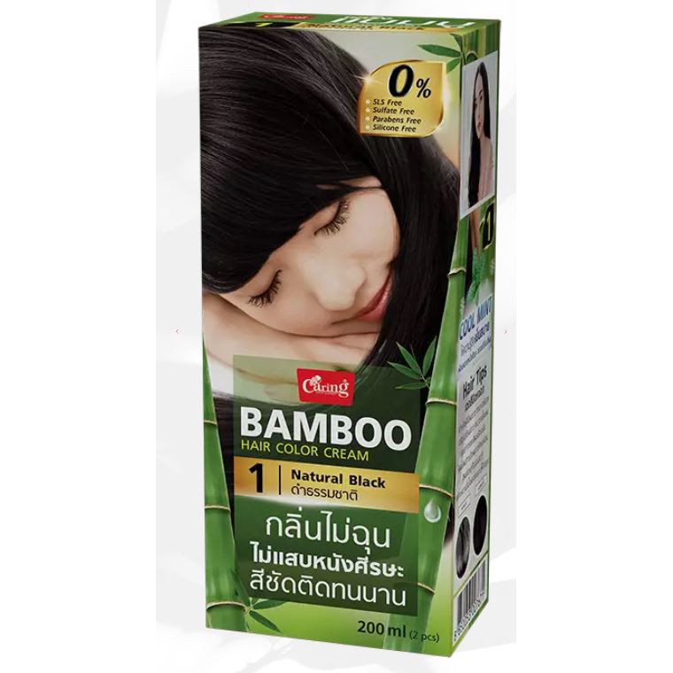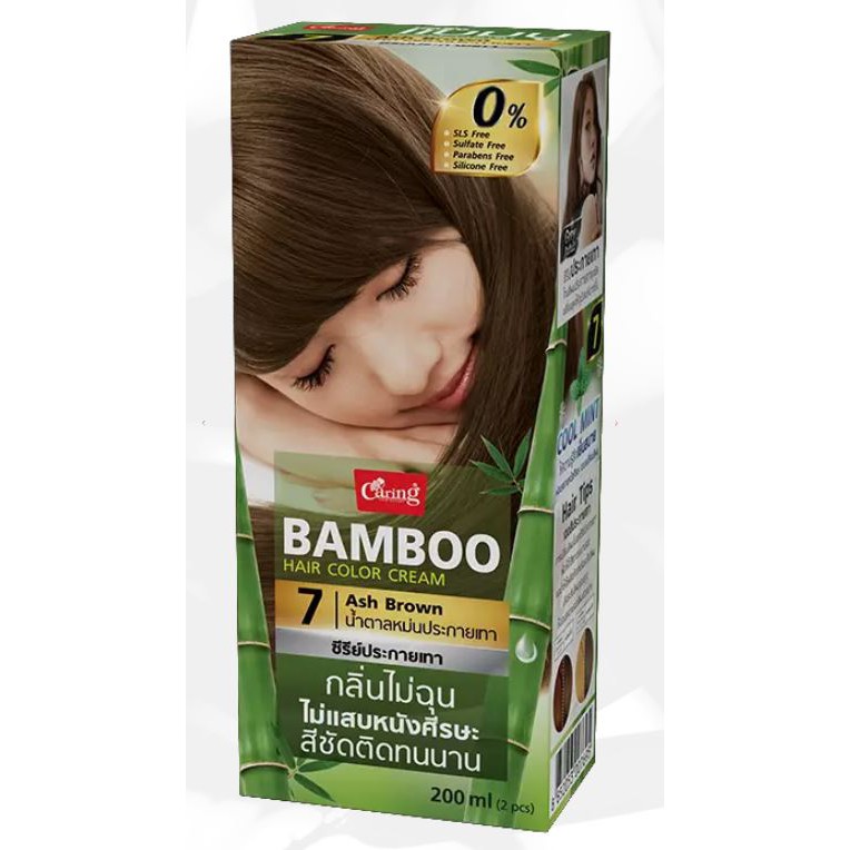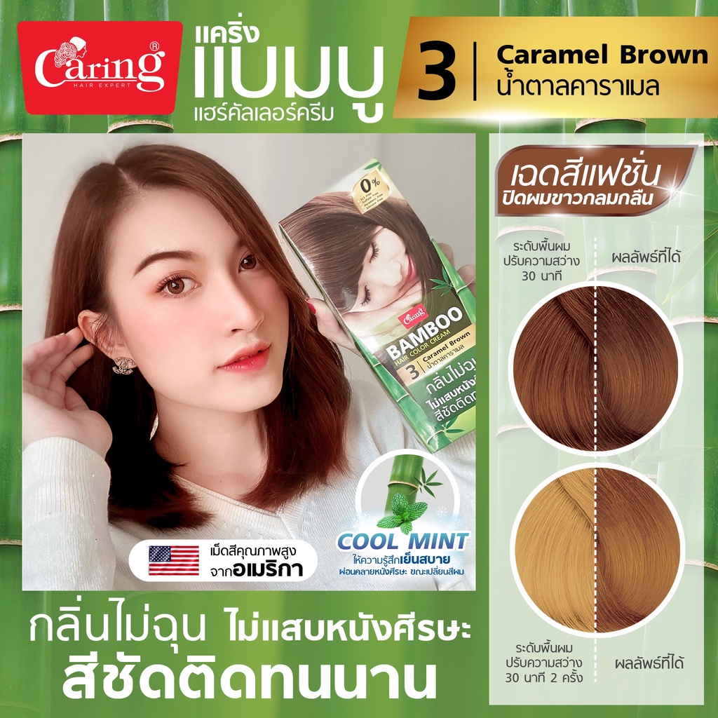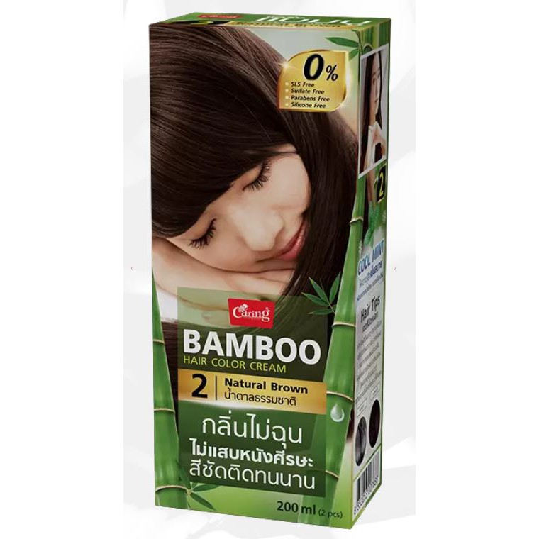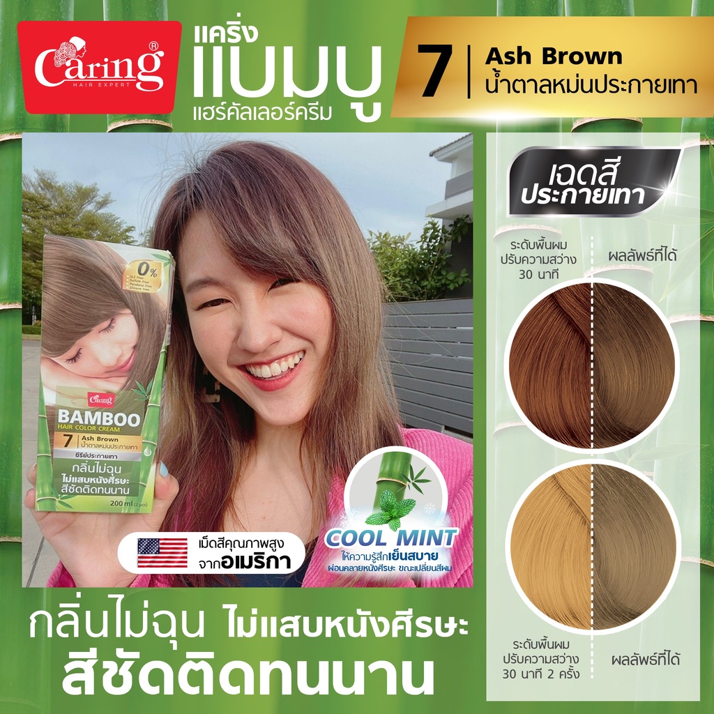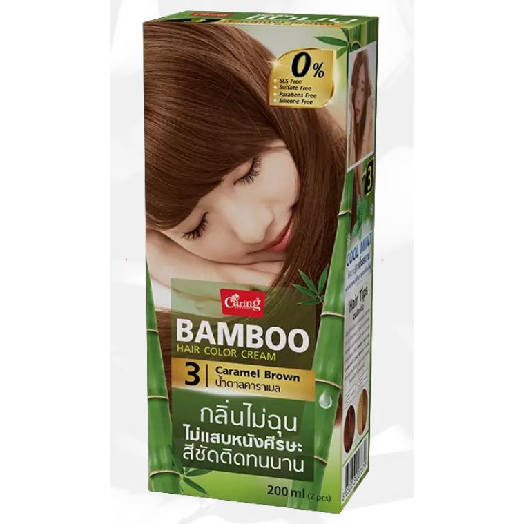 Caring แคริ่ง แบมบู แฮร์คัลเลอร์ ครีม ครีมเปลี่ยนสีผม 200 มล. ยาย้อมผม กลิ่นไม่ฉุน ไม่แสบหนังศีรษะ