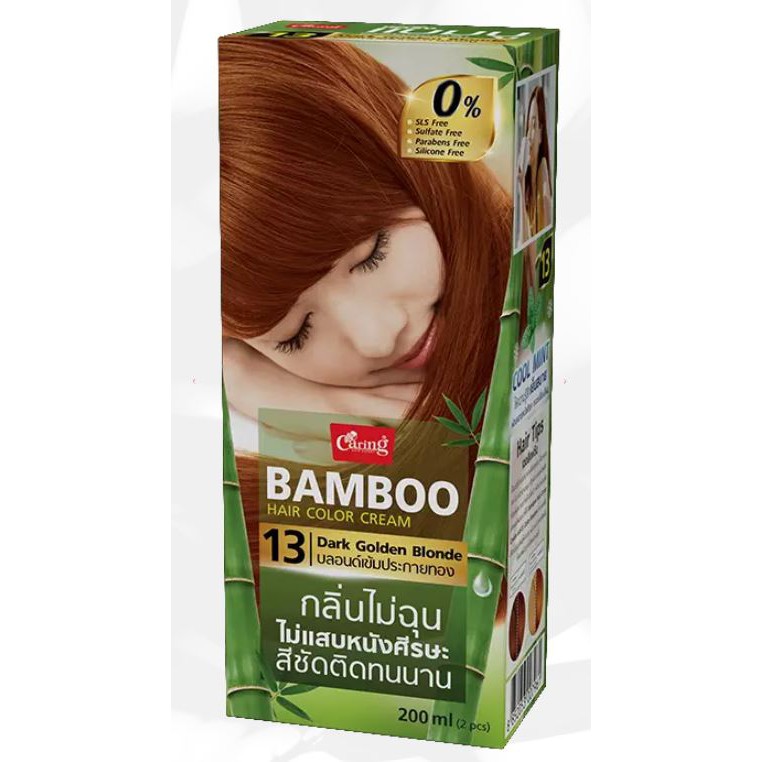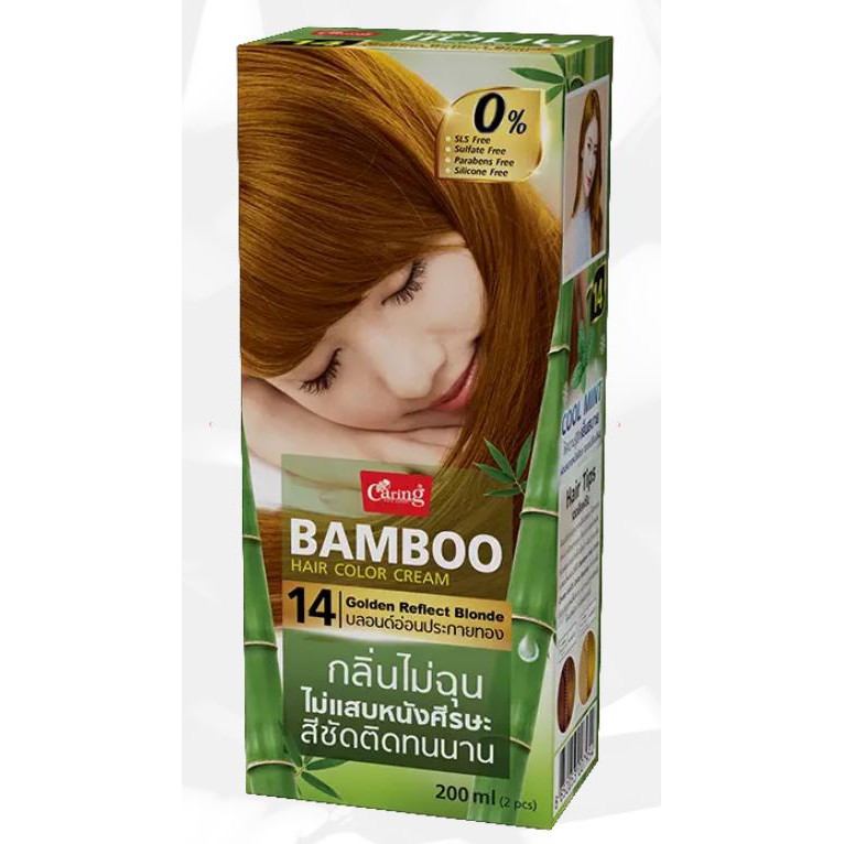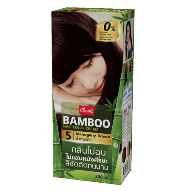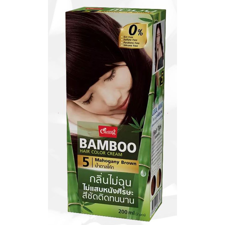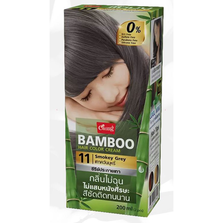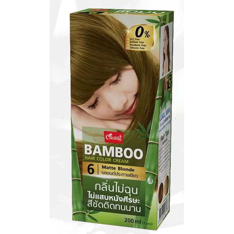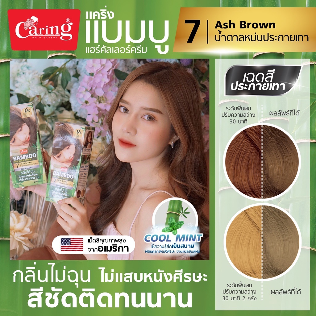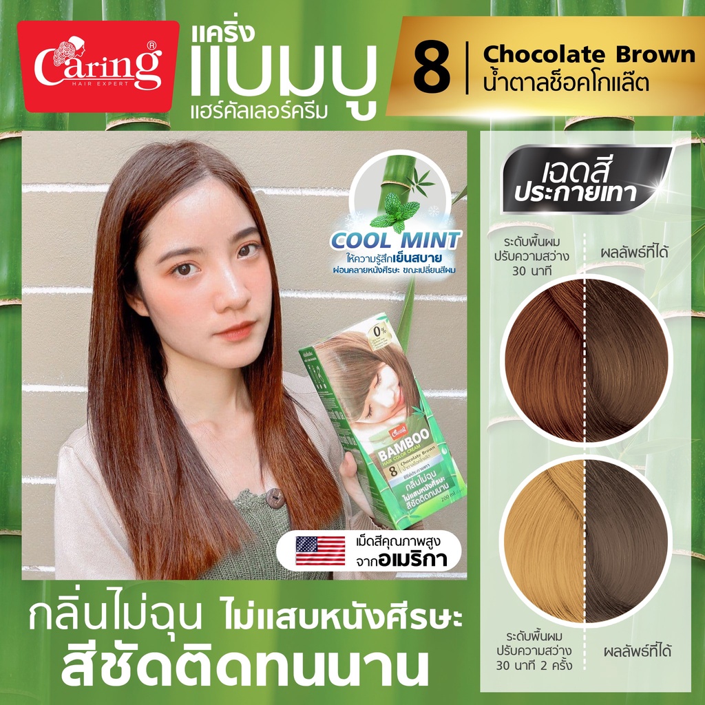 Caring แคริ่ง แบมบู แฮร์คัลเลอร์ ครีม ครีมเปลี่ยนสีผม 200 มล. ยาย้อมผม กลิ่นไม่ฉุน ไม่แสบหนังศีรษะ
