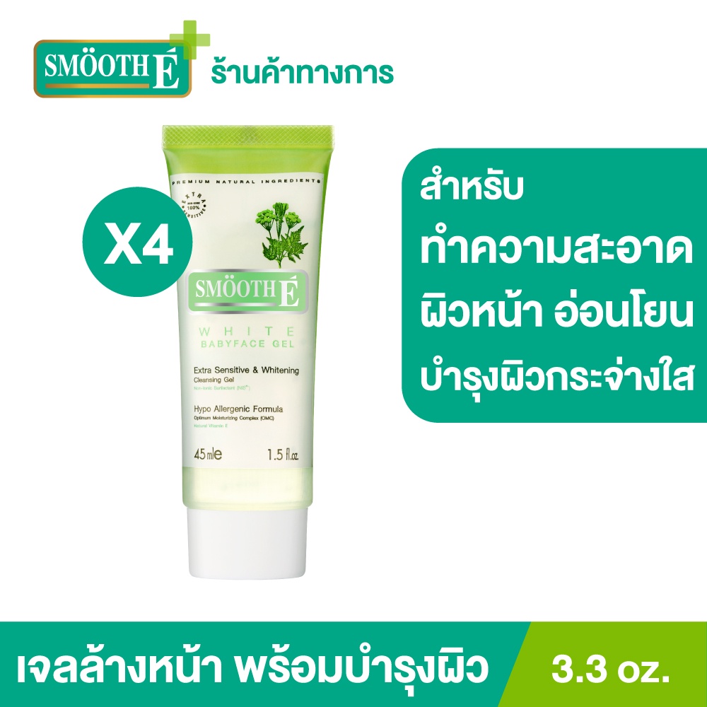 Smooth E เจลล้างหน้า สูตรไม่มีฟอง ไม่ทิ้งสารตกค้าง White Babyface Gel 3.3 Oz. ผิวขาวกระจ่างใส อ่อนโยน สมูทอี [แพ็ค 4]