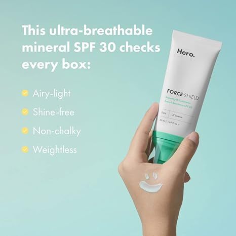 Hero Cosmetics Force Shield Superlight Sunscreen SPF 30 - Everyday SPF 30 for Acne-Prone Skin with Zinc Oxide, Green Surge, และ Extromelytes - Fragrance Free and Reef Safe (50 ml)