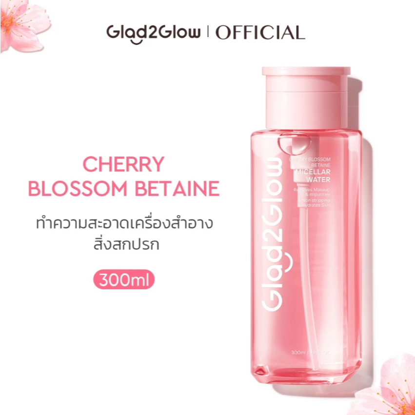 Glad2Glow Cherry Blossom Water cleansing แกลดทูโกลว์ เชอร์รี่ บลอซซั่ม บีเทน ไมเซ่ลา วอเตอร์ 300ml