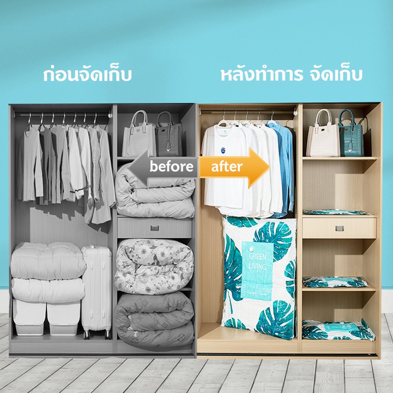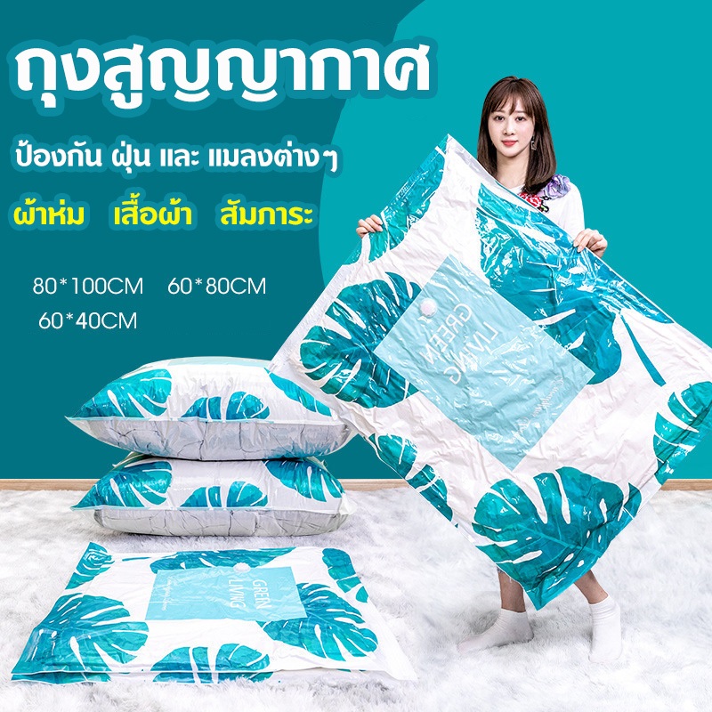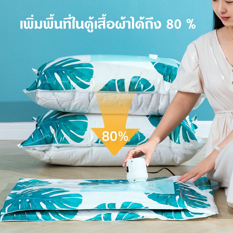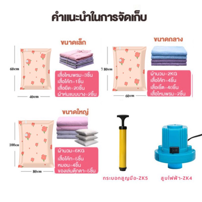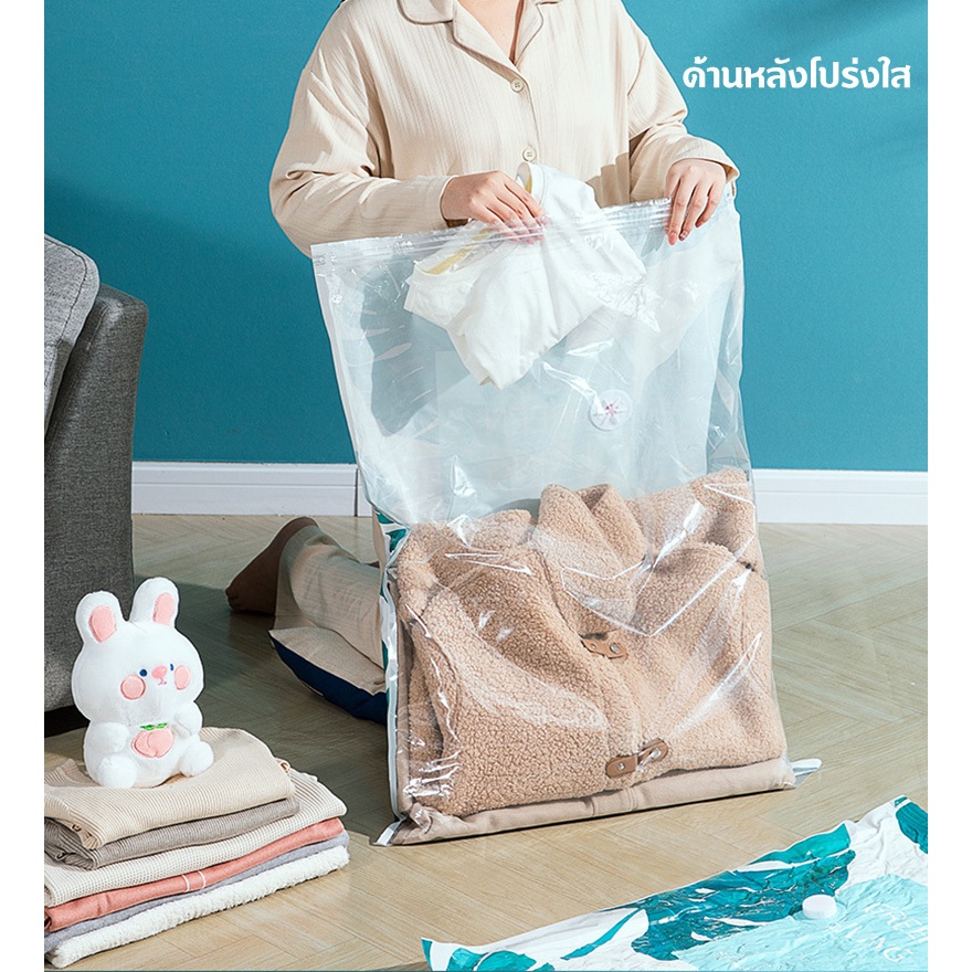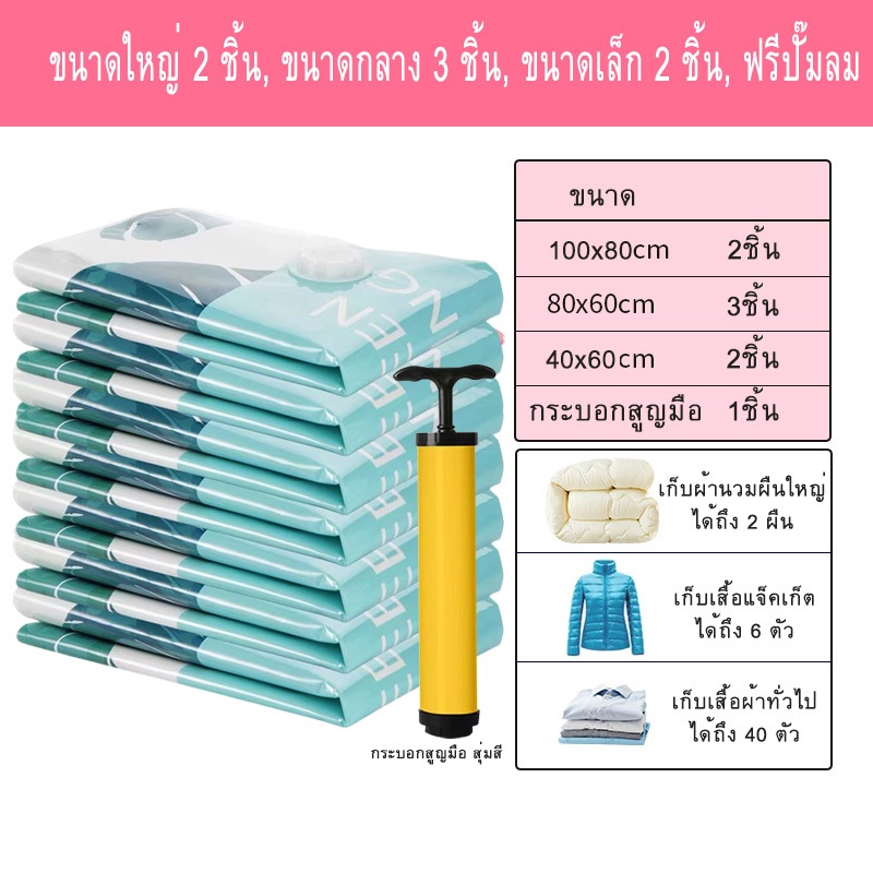 ถุงสูญญากาศ พร้อม กระบอกสูบ Set 8 ชิ้น จัดเก็บเสื้อผ้า