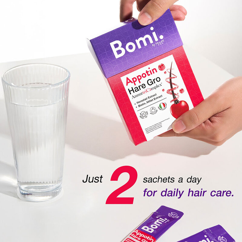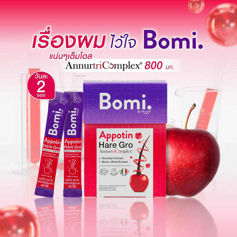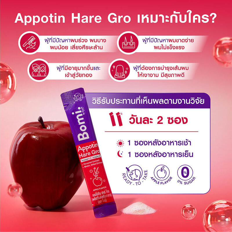 Bomi Appotin Hare Gro [2g x 14 Sachets] โบมิ ผลิตภัณฑ์เสริมอาหาร วิตามินผมสูตรเข้มข้น รสแอปเปิ้ล.