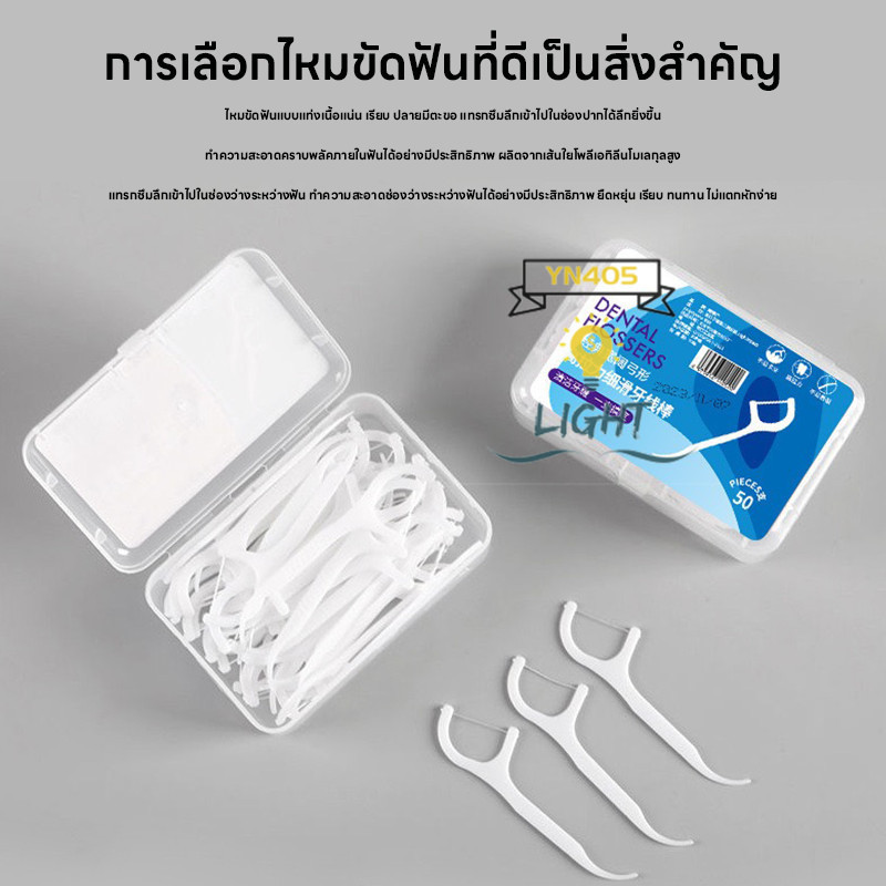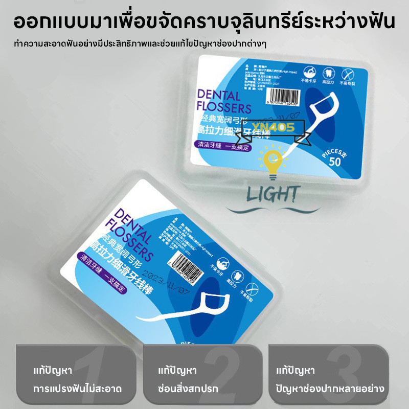 ไหมขัดฟันแบบ2IN1 ชนิดด้าม50ชิ้น ไหมขัดฟันแบบแท่ง แปรงขัดซอกฟัน ทางการแพทย์ ไม้จิ้มฟันพลาสติก แปรงสีฟัน