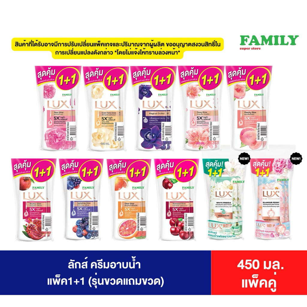 Lux ลักส์ ครีมอาบน้ำ รุ่นขวดแถมขวด ขนาด 450มล.(แพคคู่) [002]