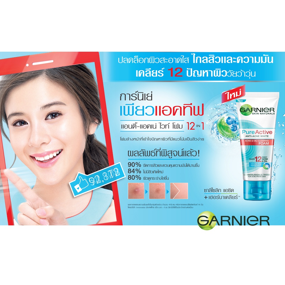 การ์นิเย่ โฟมล้างหน้า 100มล. GARNIER Facial Foam Cleanser