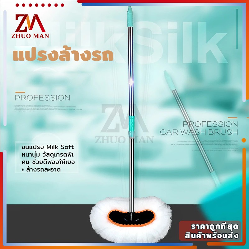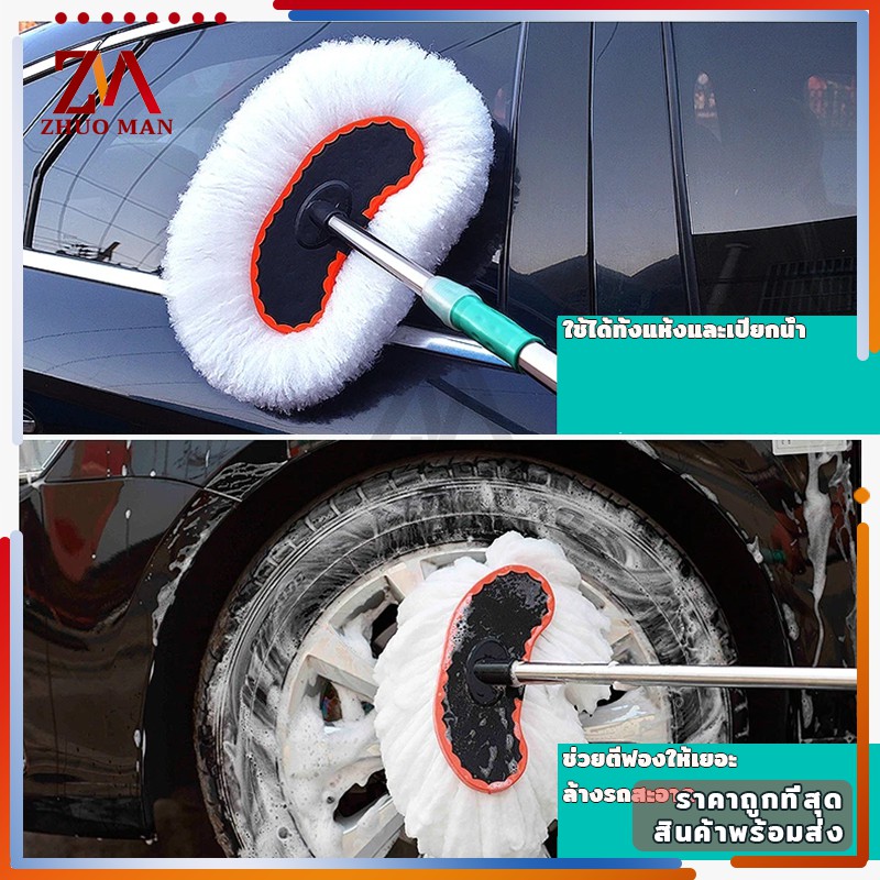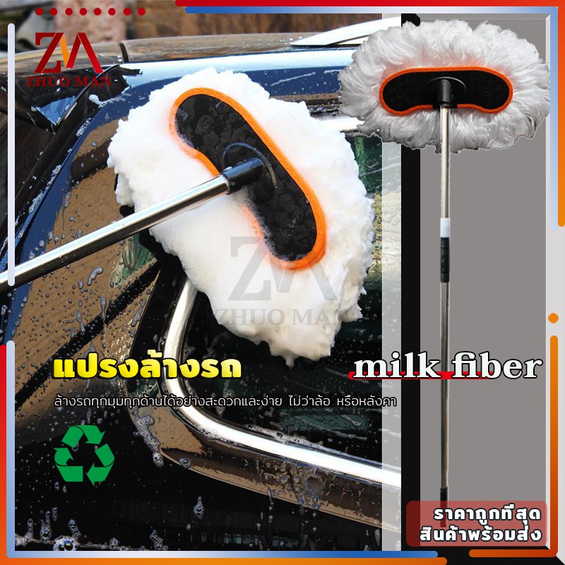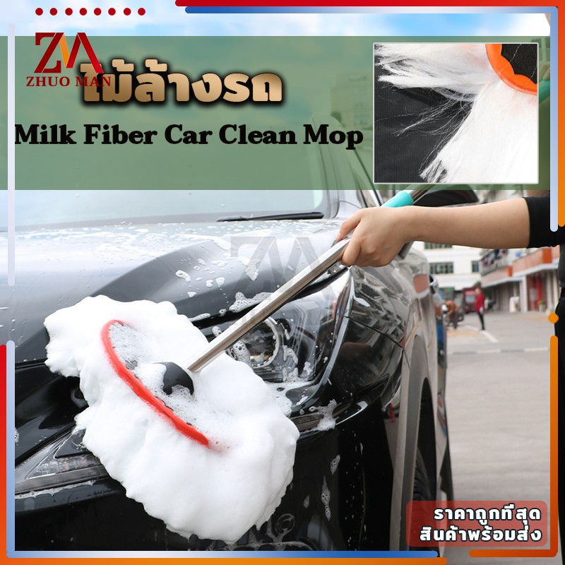 แปรงล้างรถ ไม้ล้างรถ วัสดุmilk fiber Car Washing Brush ล้างรถอย่างสะดวกและไม่เกิดรอยกับผิวรถ ปรับความยาวได้70-125cm