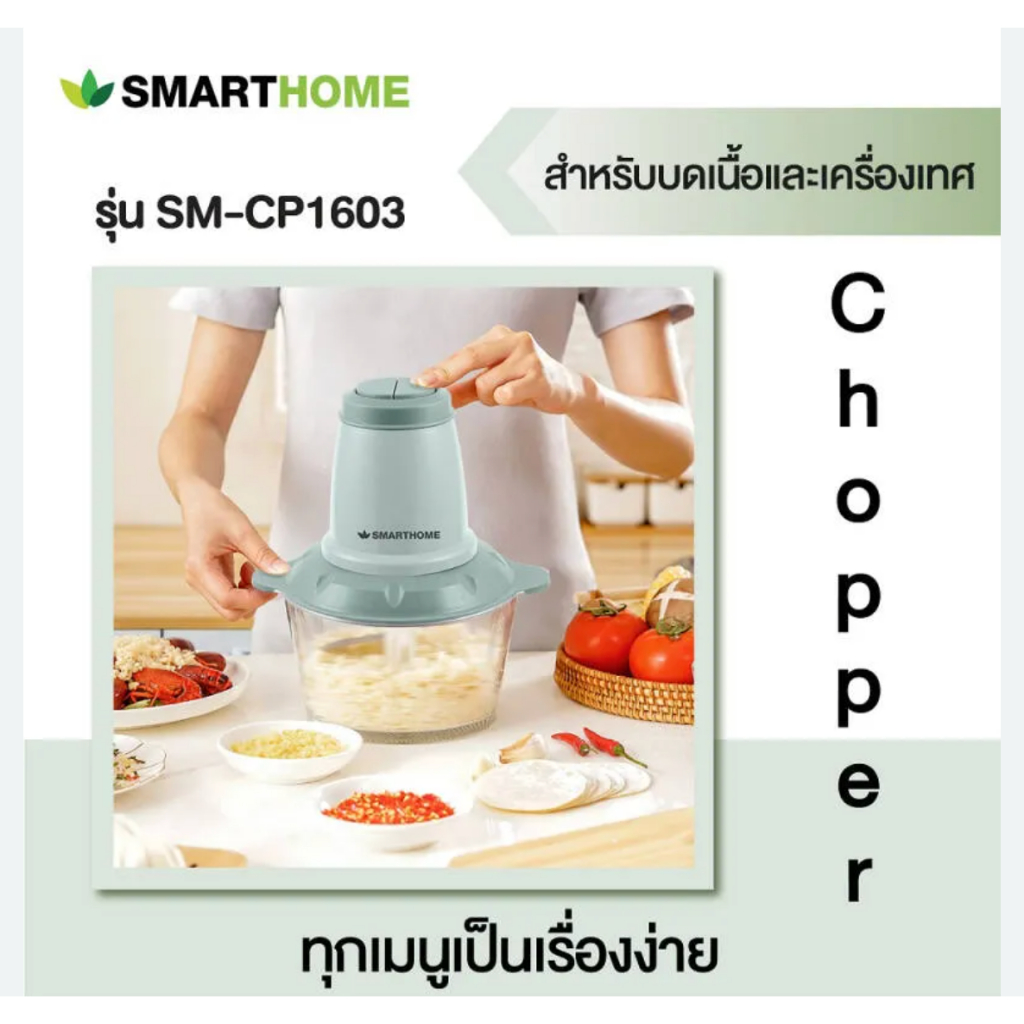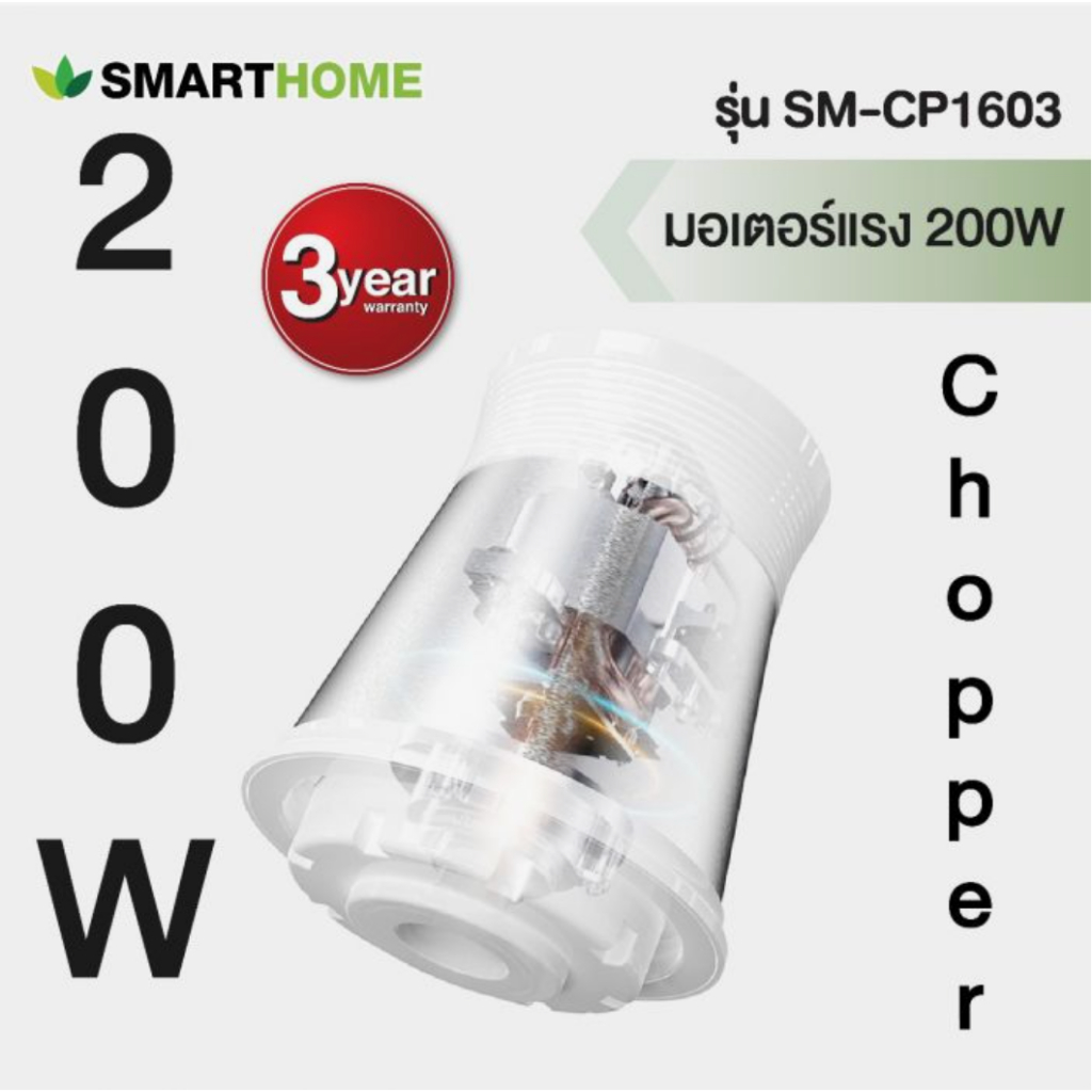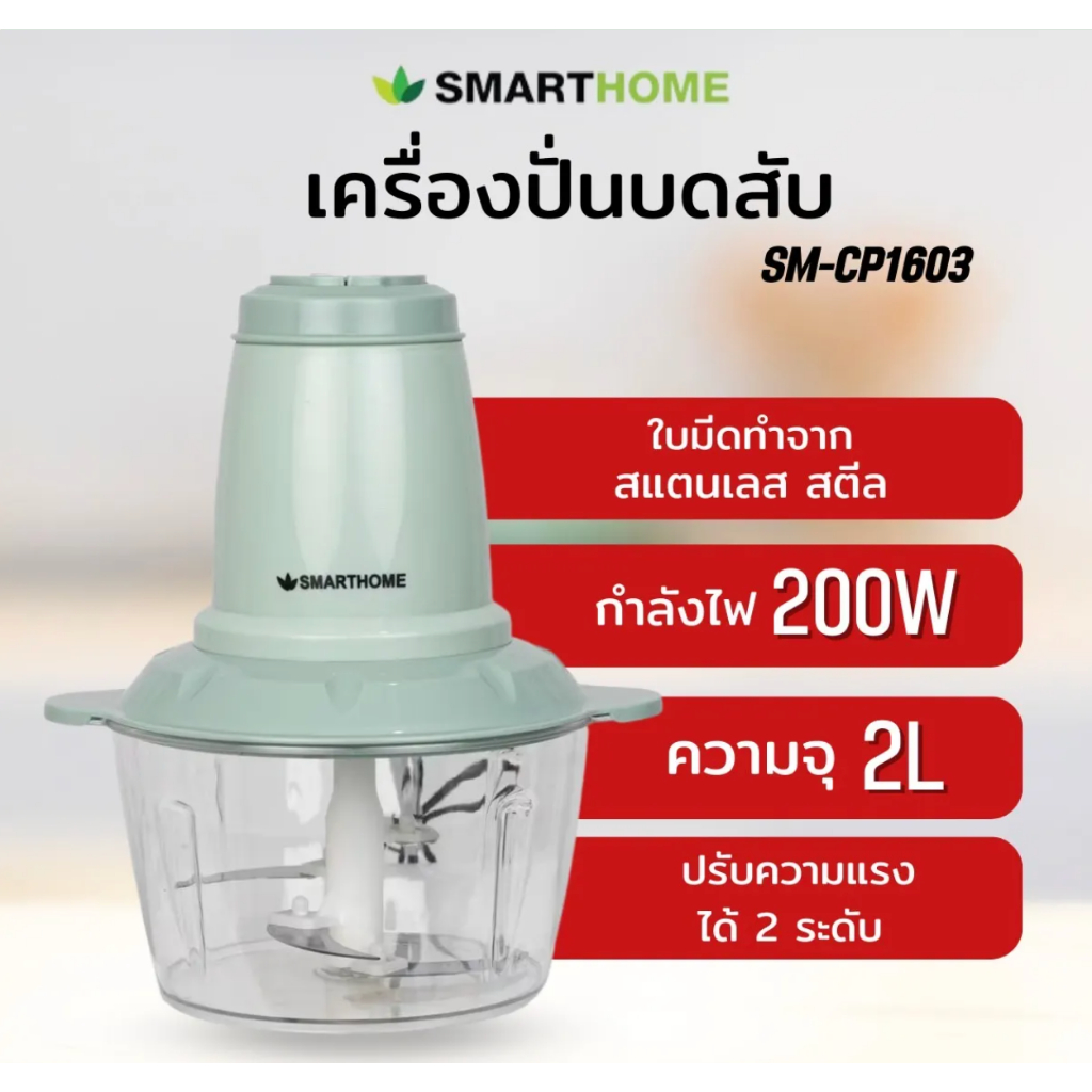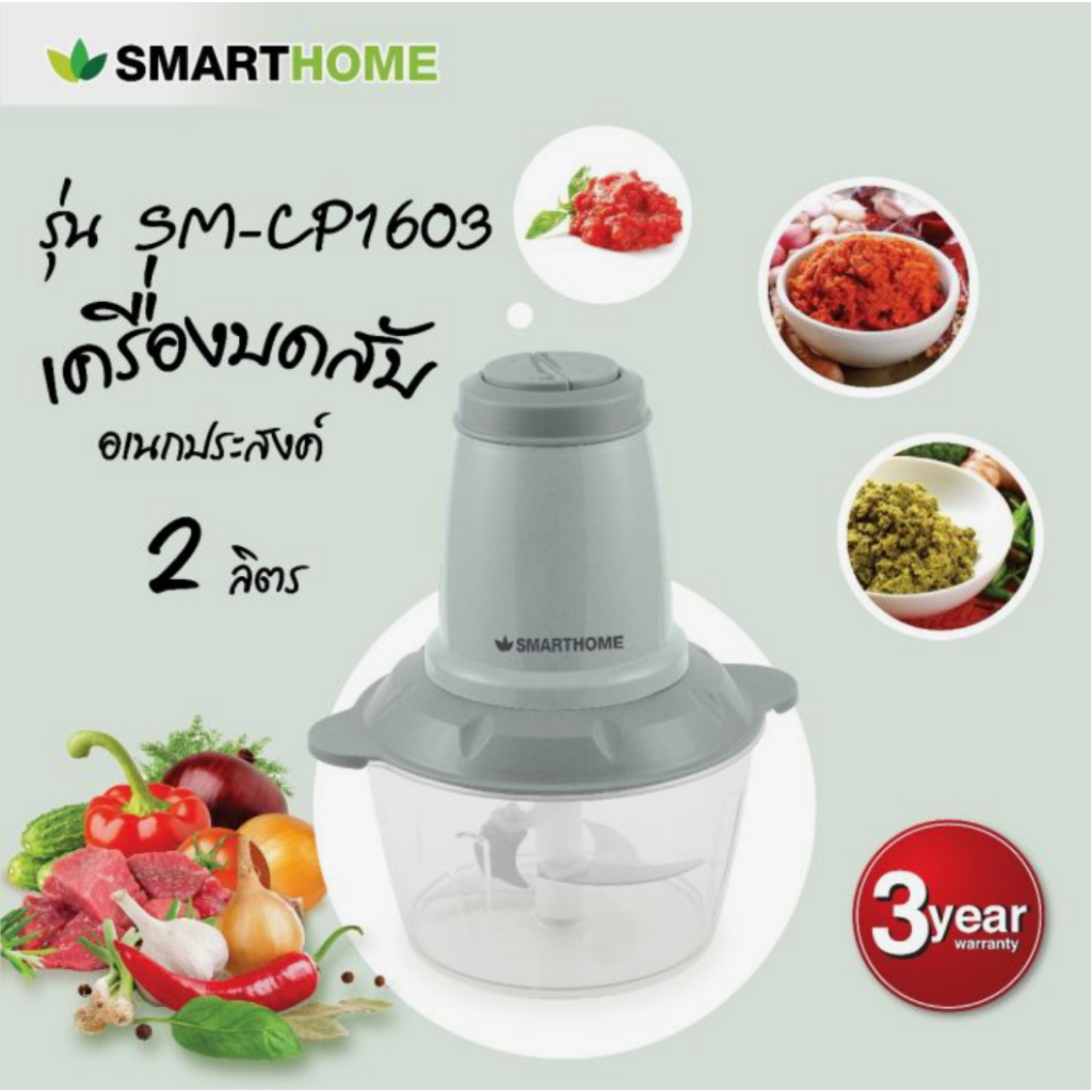 Smarthome รุ่น SM-CP1603 เครื่องปั่นบดสับอเนกประสงค์ จุ 2 ลิตร 200 วัตต์ รับประกันนาน 3 ปี