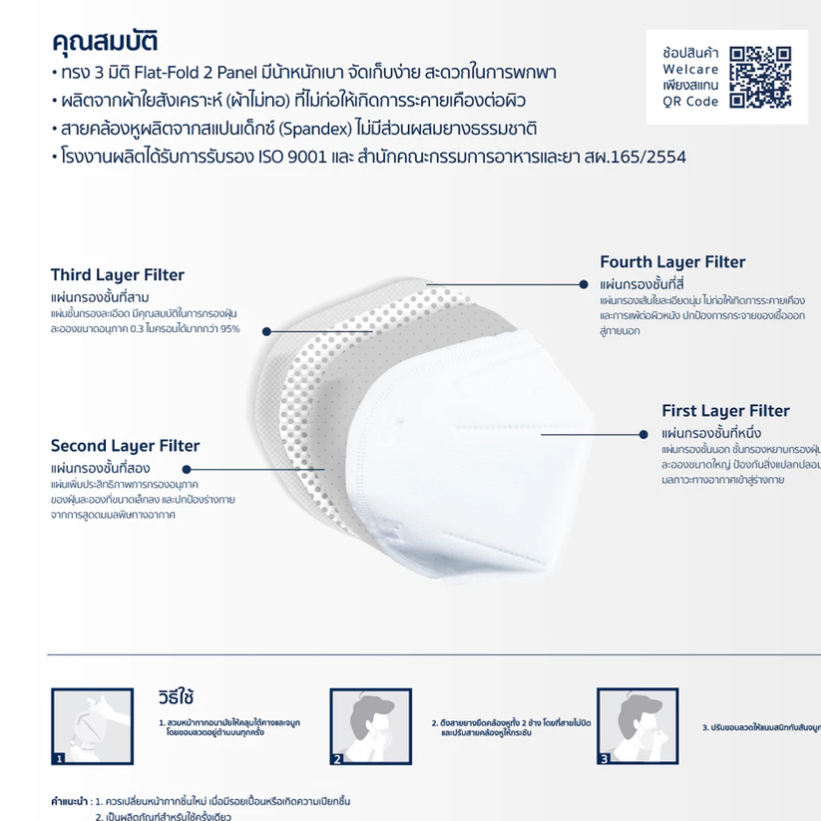 Welcare N95 Face Mask หน้ากากอนามัย แบบไม่มีวาล์ว ซอง1ชิ้น