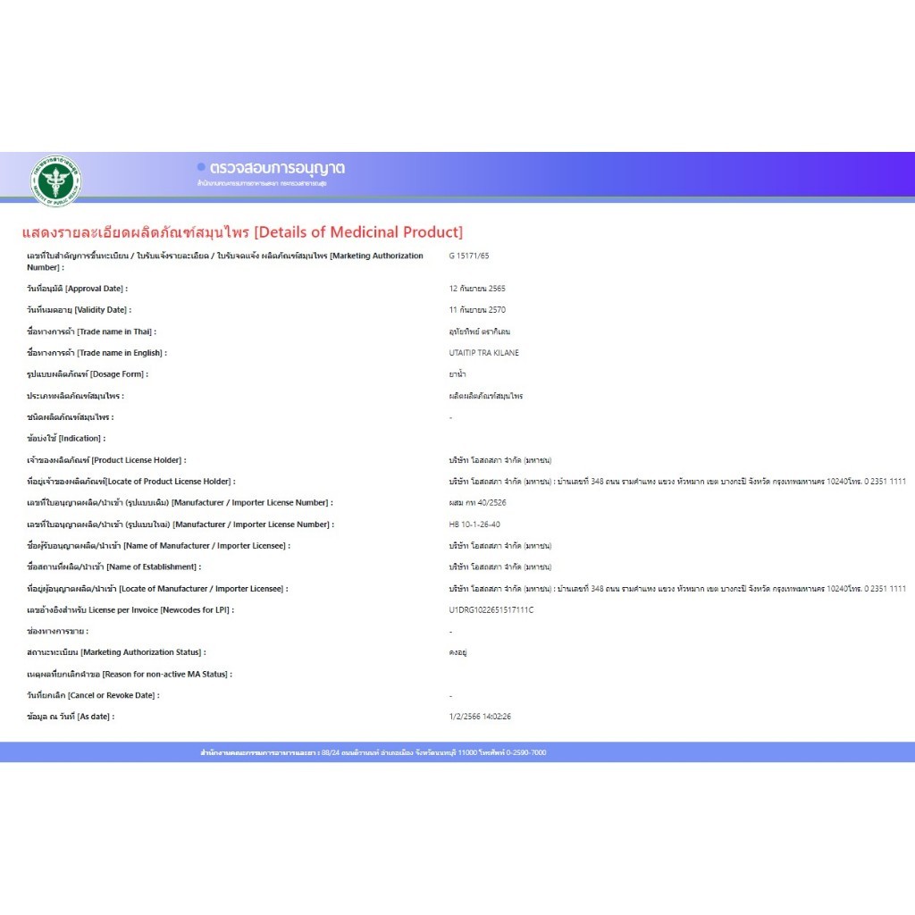 🔥พร้อมส่ง🔥 ยาน้ำ อุทัยทิพย์ สูตรใหม่ ตรากิเลน 1 ขวด ขนาดใหม่ 15 มล เป็นยาสมุนไพรขายทั่วไป Utaitip 15ml.