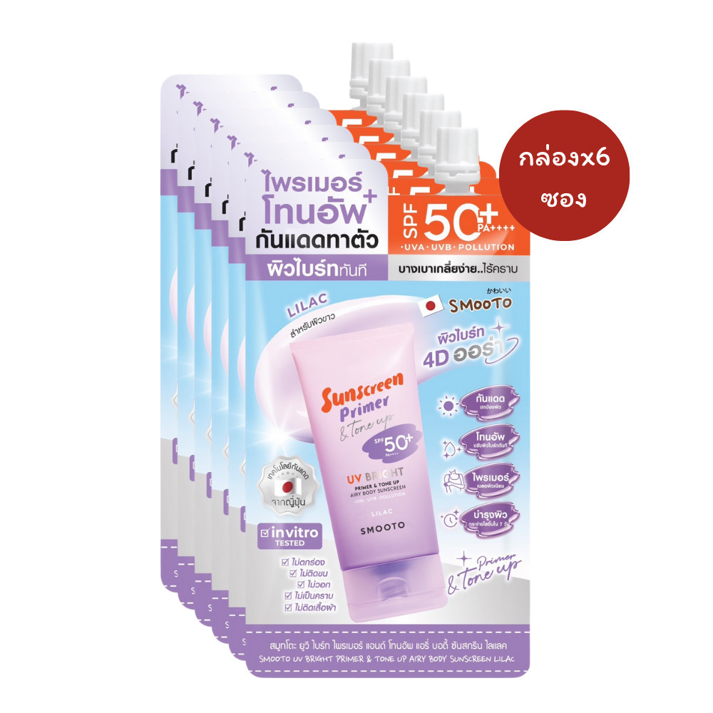 (กล่องX6ซอง) โทนอัพกันแดด Smooto UV Bright Primer & Tone Up SPF50+ PA++++ เนื้อบางเบา เกลี่ยง่าย