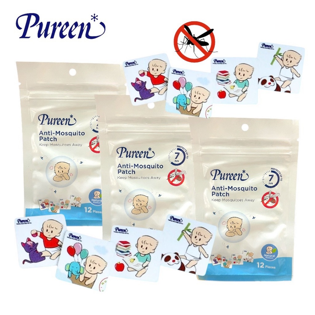 สติ๊กเกอร์กันยุงPureen เพียวรีน แผ่นแปะกันยุง ธรรมชาติสำหรับเด็ก 1ซอง12แผ่น ปกป้องยาวนาน 7ชั่วโมง