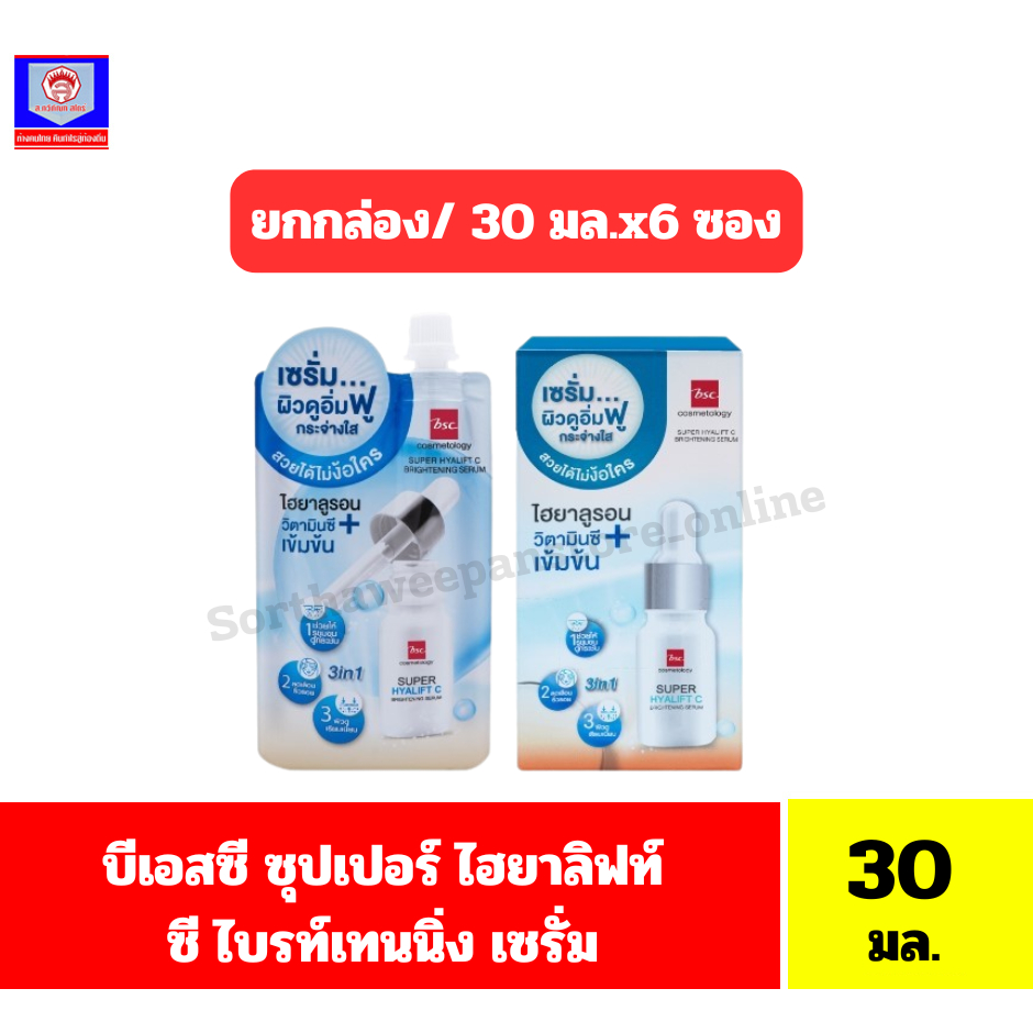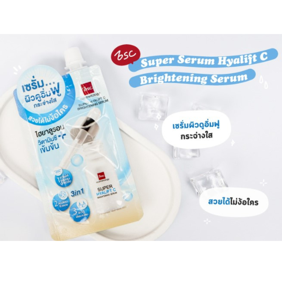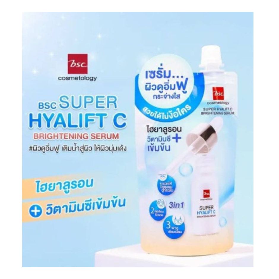 บีเอสซี ซุปเปอร์โฮยาลิฟท์ ซี ไบรท์เทนนิ่ง เซรั่ม ผลิตภัณฑ์เซรั่มบำรุงผิวหน้า ปริมาณ 30 มล.**กล่อง/6ซอง**