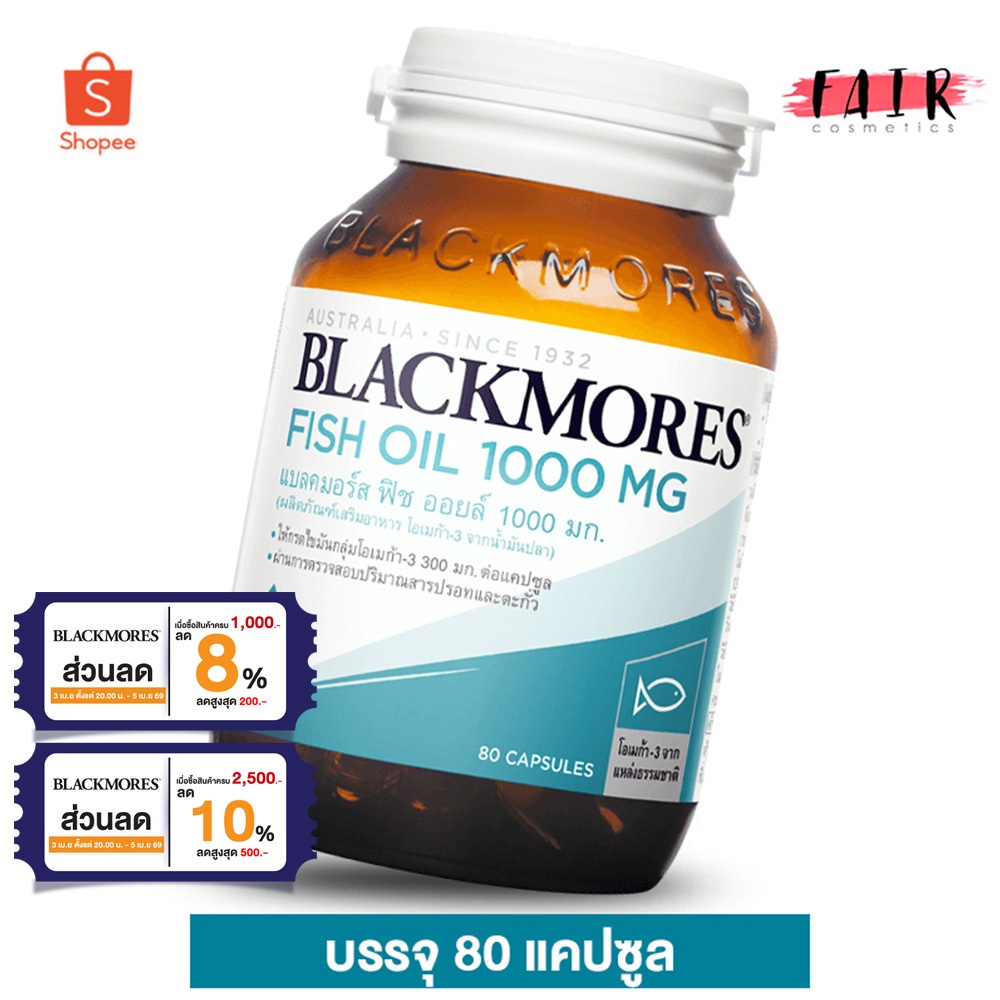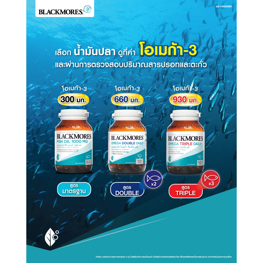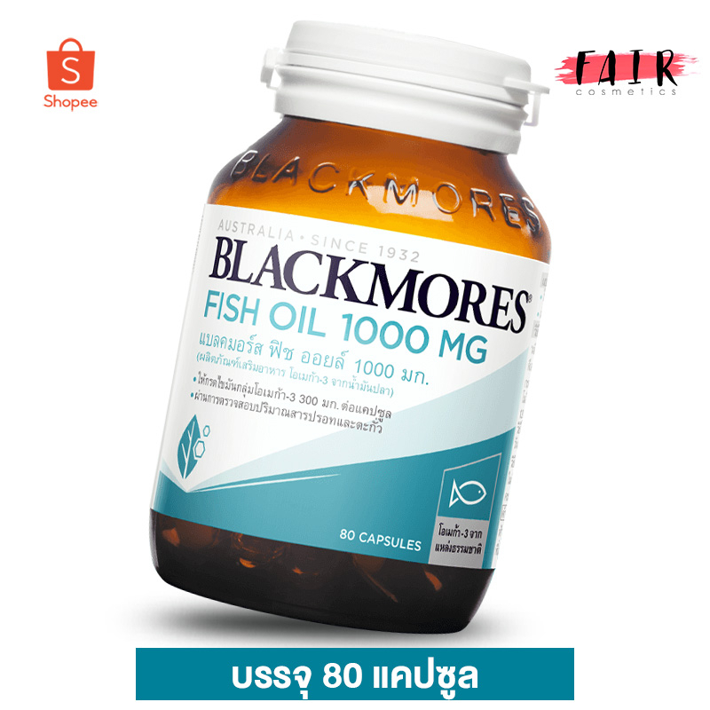 Blackmores Fish Oil 1000 mg. แบล็คมอร์ ฟิช ออยล์ 1000 มก. 80 แคปซูล
