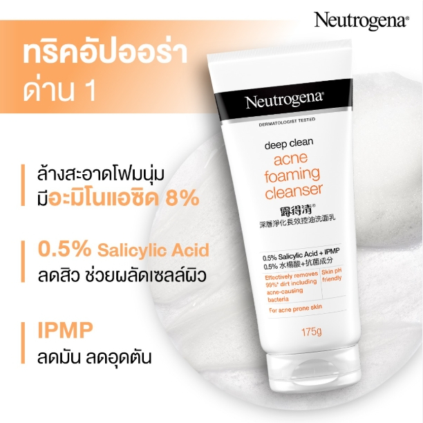 Neutrogena Deep Clean นูโทรจีนา ดีพ คลีน 100 กรัม โฟมล้างหน้า ผิวไม่แห้งตึง