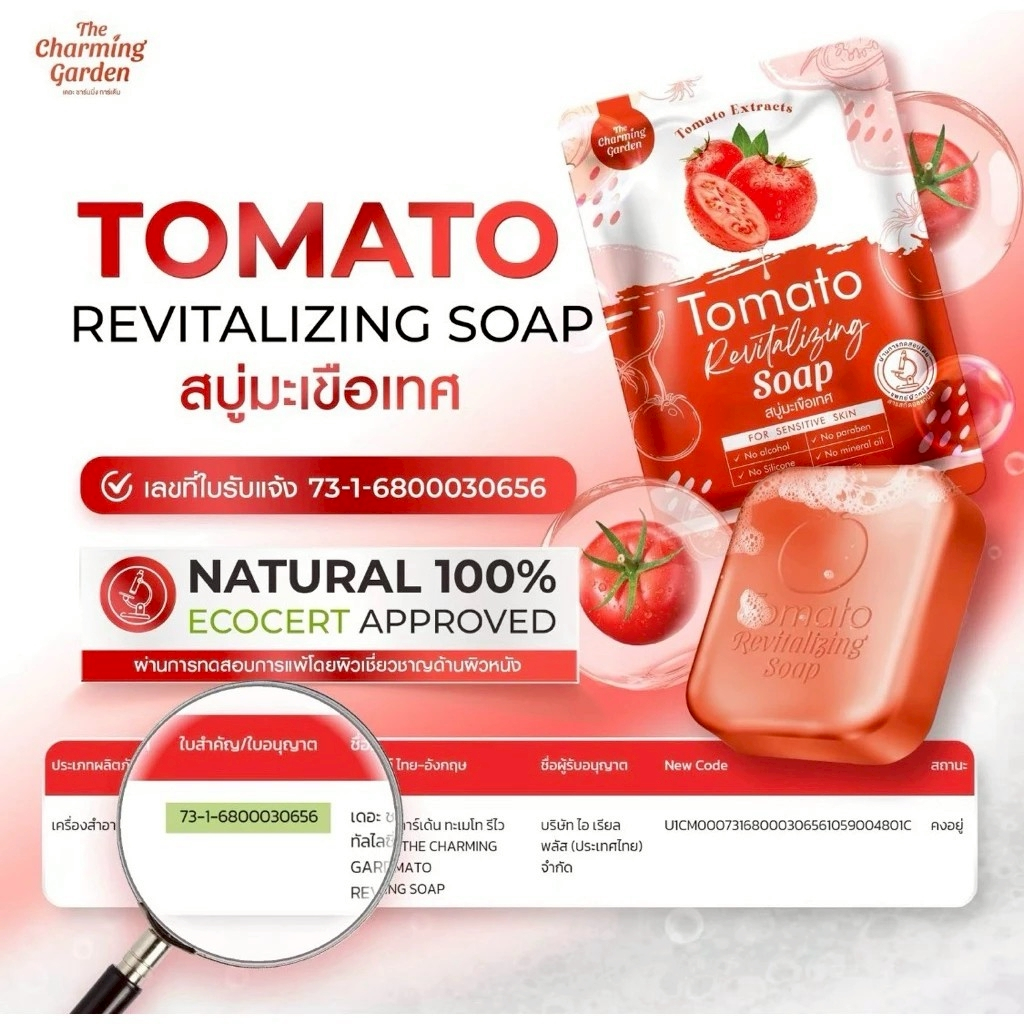(10 ก้อน) The Chraming Tomato Revitalizling Soap สบู่มะเขือเทศ (50 g.)