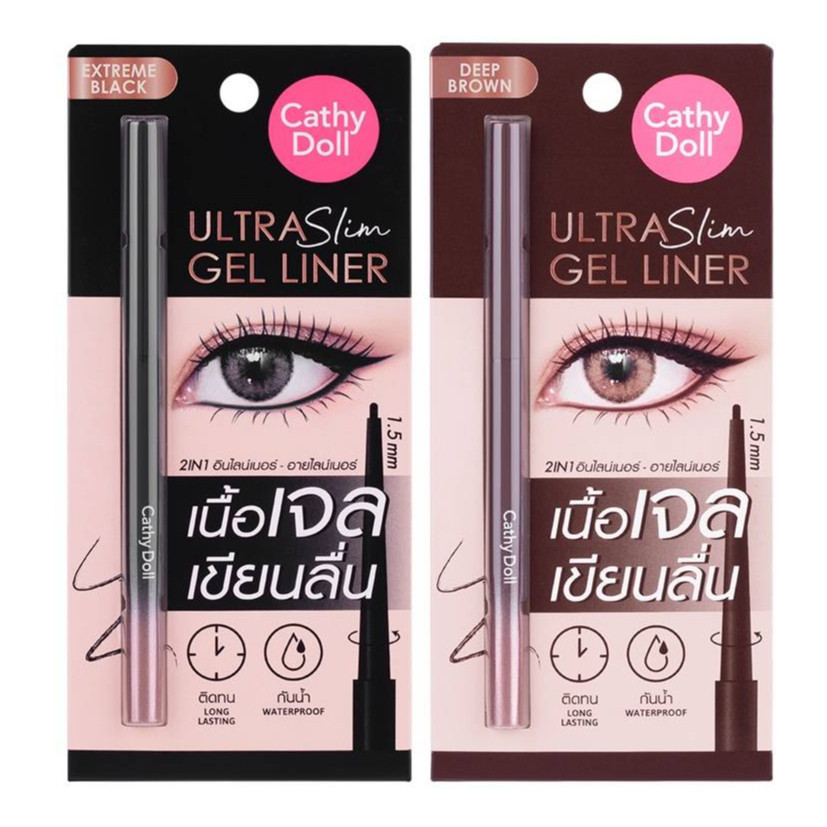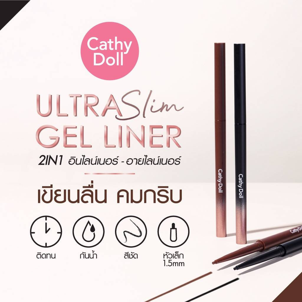 ( 1 แท่ง ) อัลตร้าสลิมเจลไลน์เนอร์+อายไลน์เนอร์ CATHY DOLL ULTRA SLIM GEL LINER 0.07g. 1.5mm ดำ/น้ำตาล