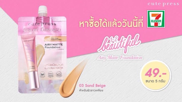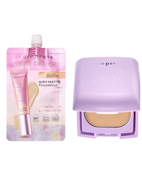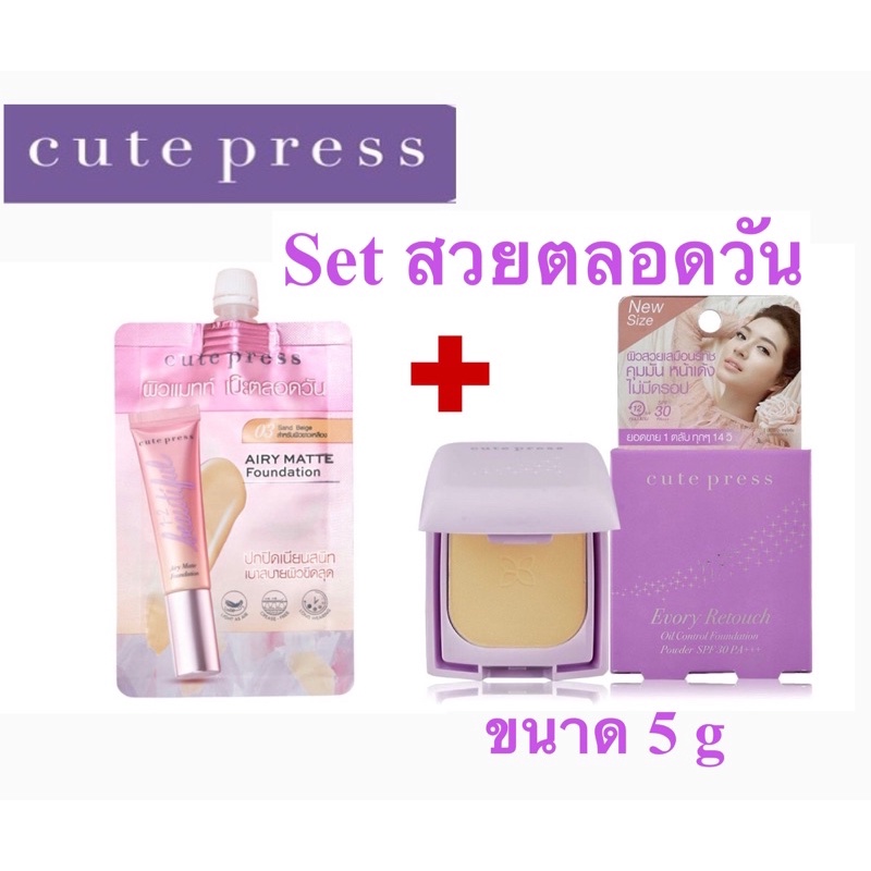 (เซ็ท สวยตลอดวัน) รองพื้นซองรุ่นใหม่ CUTE PRESS 1-2 Beautiful Airy Matte + Cute Press Every Retouch Oil Control ขนาด 5gd