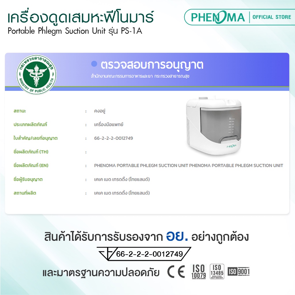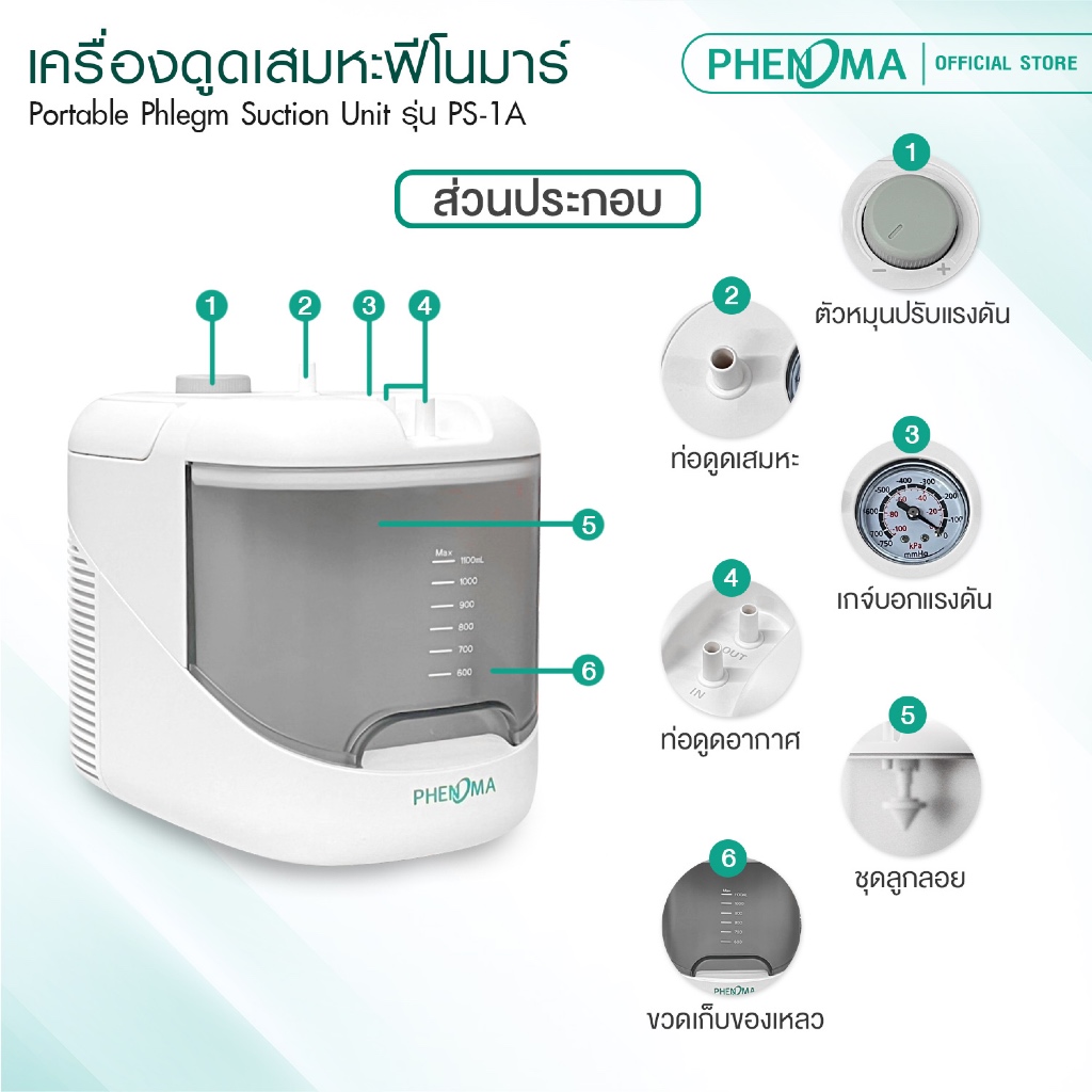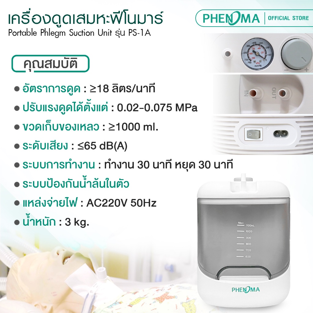 เครื่องดูดเสมหะแบบพกพา PHENOMA รุ่น PS-1A Portable Phlegm Suction Unit