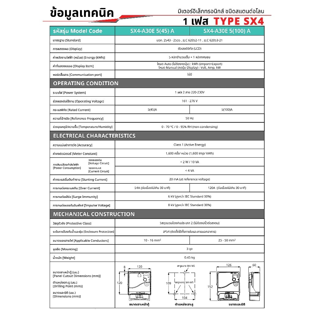มิเตอร์ไฟฟ้าดิจิตอล 5A(100A) 2P MITSUBISHI SX4-A30E