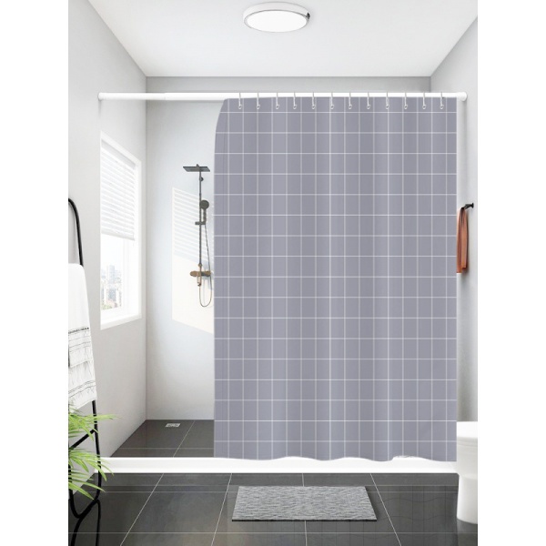 GlobalHouse Primo ม่านห้องน้ำโพลีเอสเตอร์ ลายตาราง รุ่น สแควร์ 3XMYL-006 ขนาด 180x180 ซม. สีเทา สินค้าของแท้คุณภาพดี