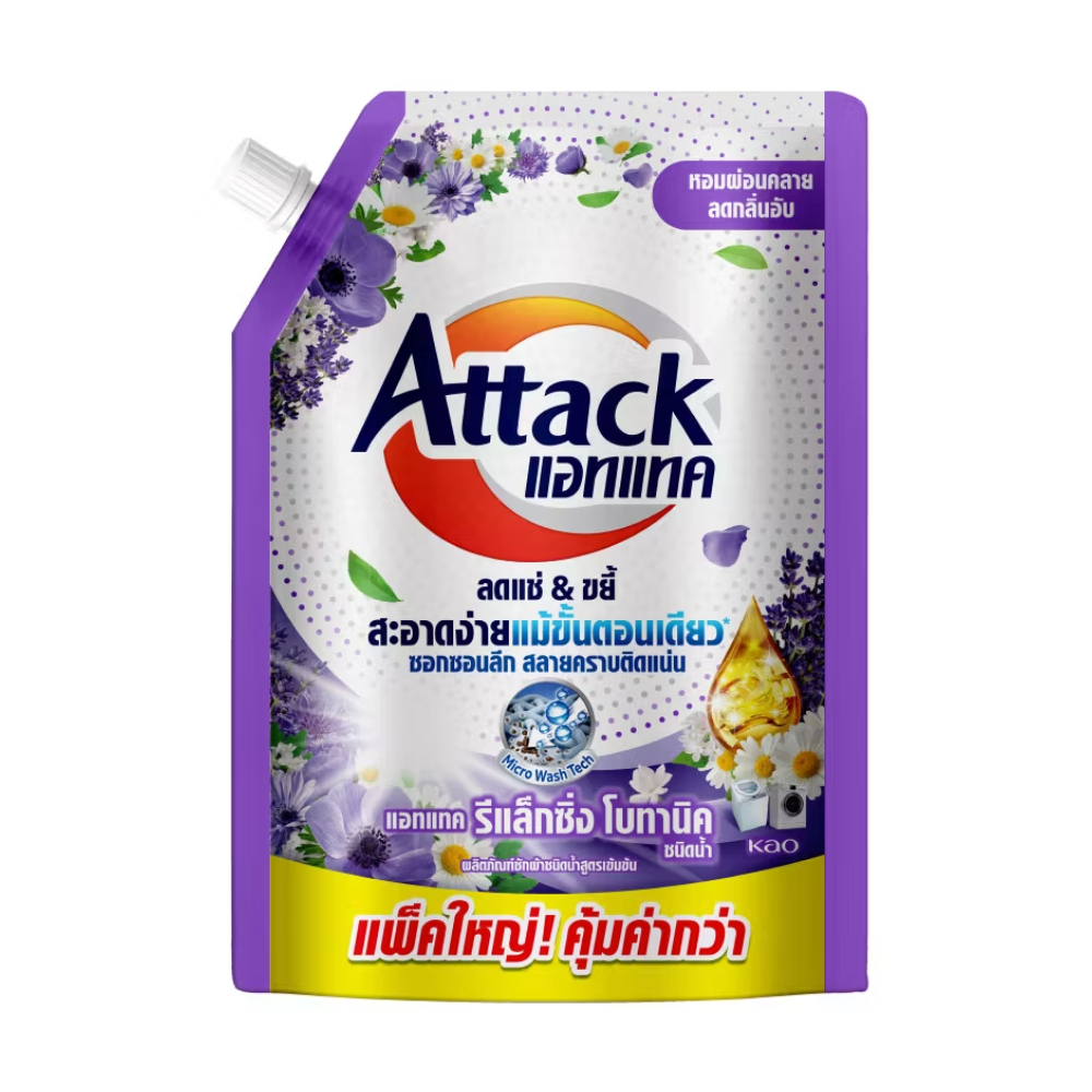 Attack แอทแทค ผลิตภัณฑ์ซักผ้าชนิดน้ำ น้ำยาซักผ้า ขนาด 1300-1400 มล.