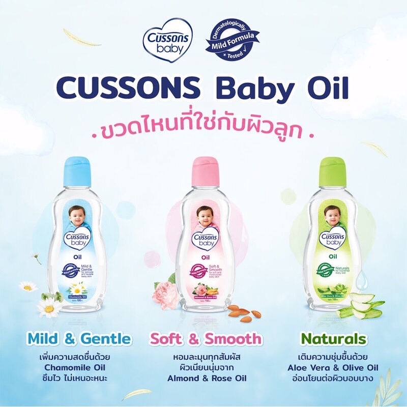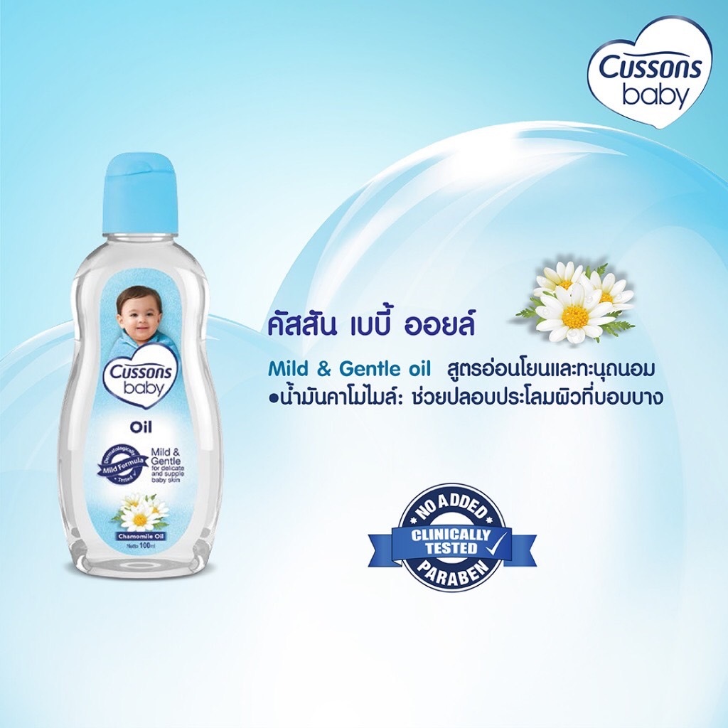 (แพ็คเกจ 1 แถม1) Cussons Baby Oil 100ml./200ml. คัสสัน เบบี้ ออยล์ ออยล์บำรุงผิว เนื้อใส