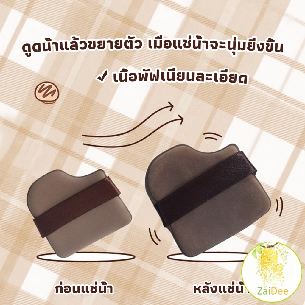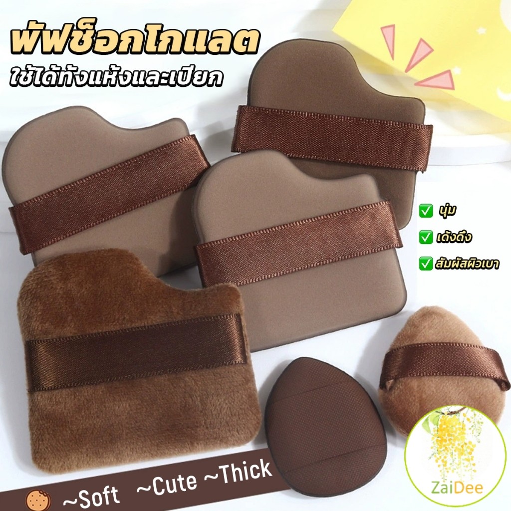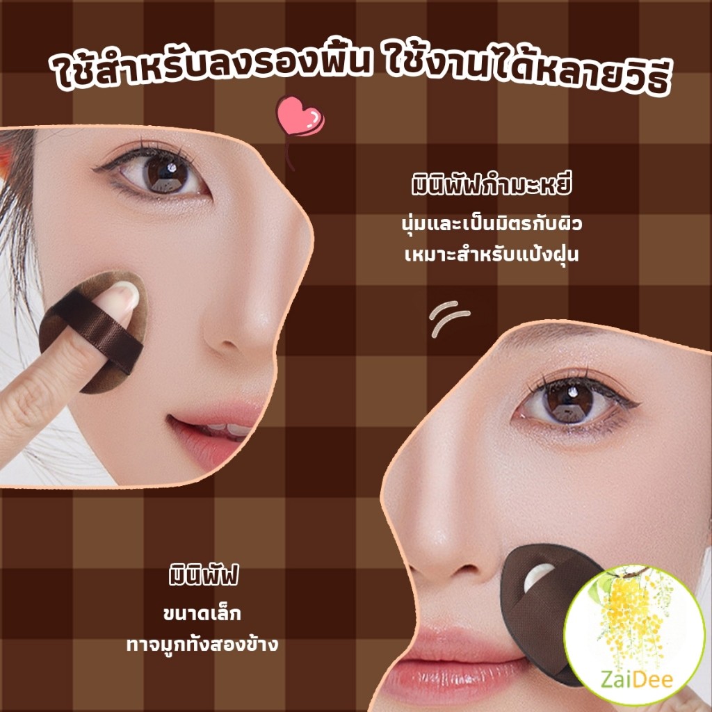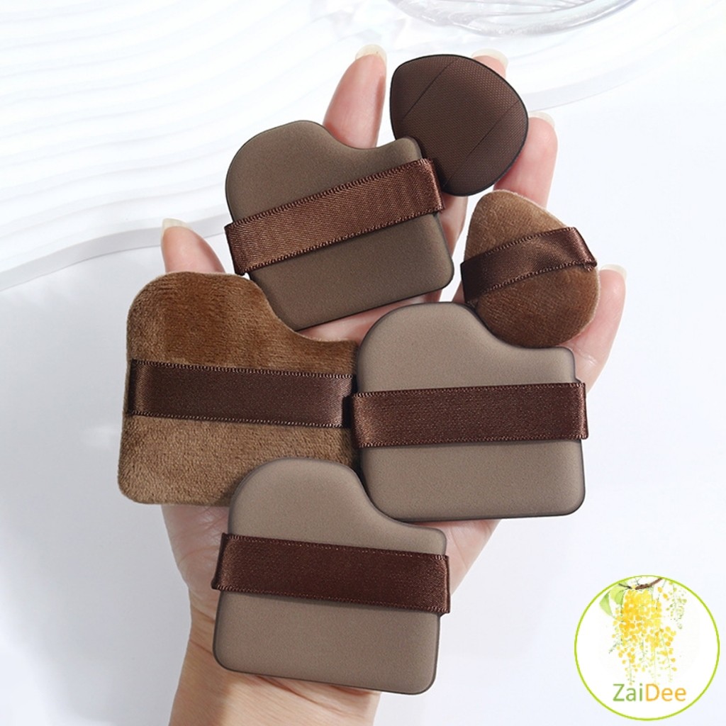 พัฟแต่งหน้า พร้อมกล่อง ชุด 6 ชิ้น สีช็อกโกแลต พัฟกำมะหยี่ สำ หรับลงรองพื้น ไม่กินแป้ง นุ่มพิเศษ ขนาดมินิ แบบแห้งและเปียก