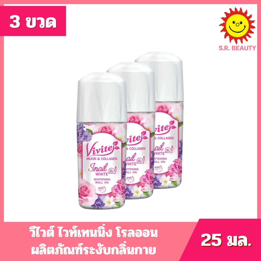 [ 3 ขวด ] Vivite วีไวต์ ไวท์เทนนิ่ง โรลออน ผลิตภัณฑ์ระงับกลิ่นกาย ขนาด 20-25 มล. (3ขวด)