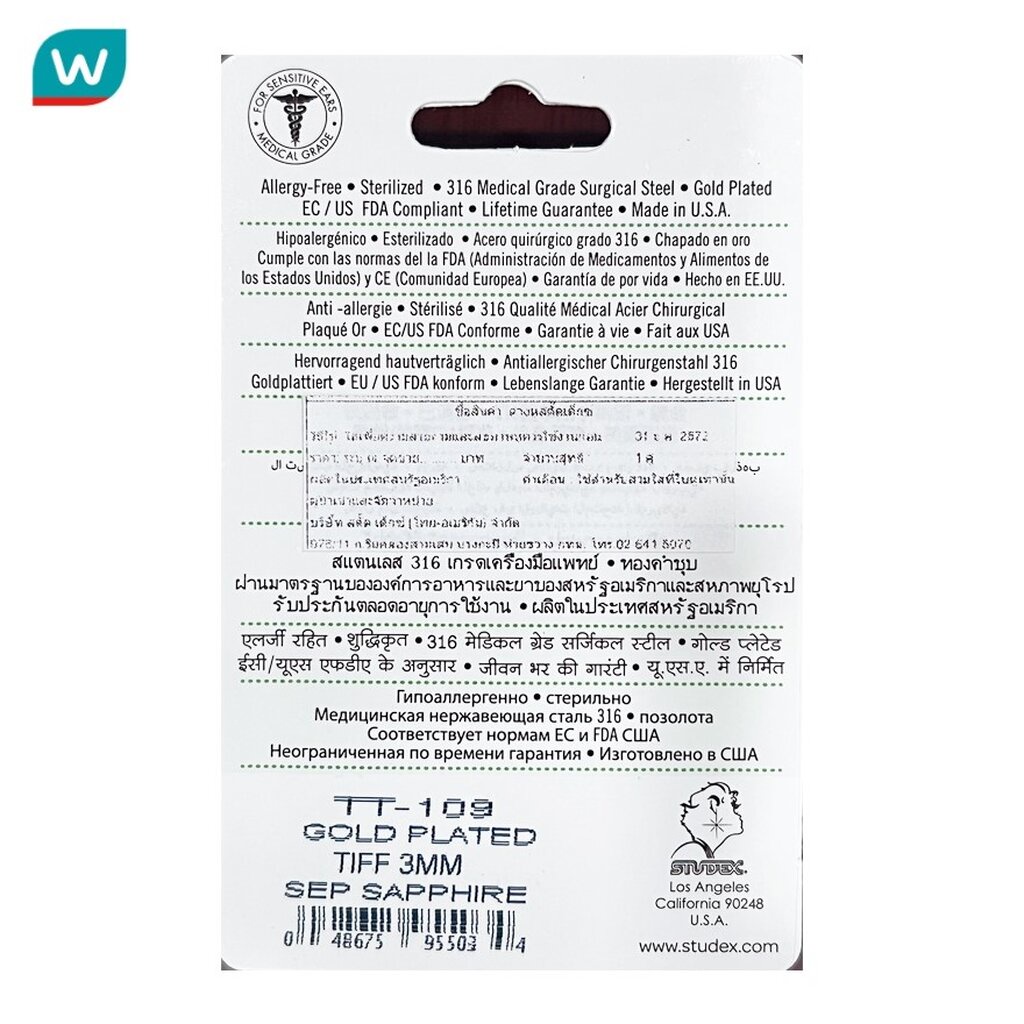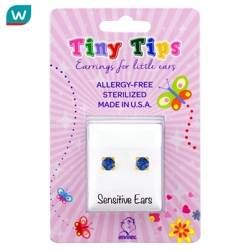 Studex สตั๊ดเด็กซ์ ไทนี่ ทิปส์ ต่างหูเด็ก สำหรับผิวแพ้ง่าย ทองชุบ 3มม เซฟ แซฟไพร์