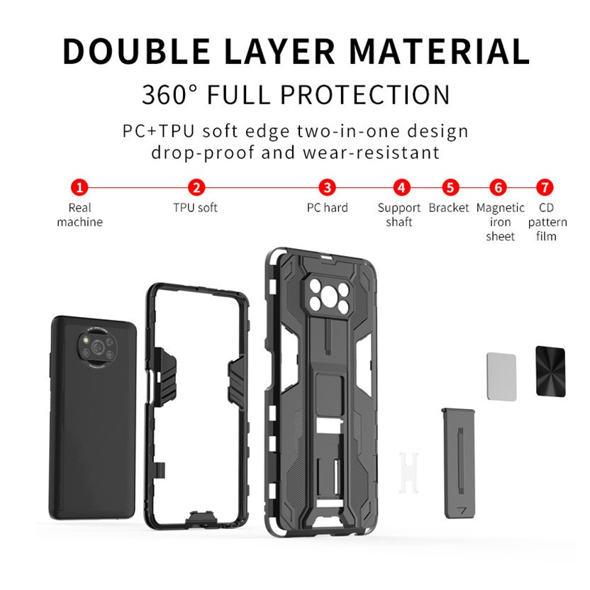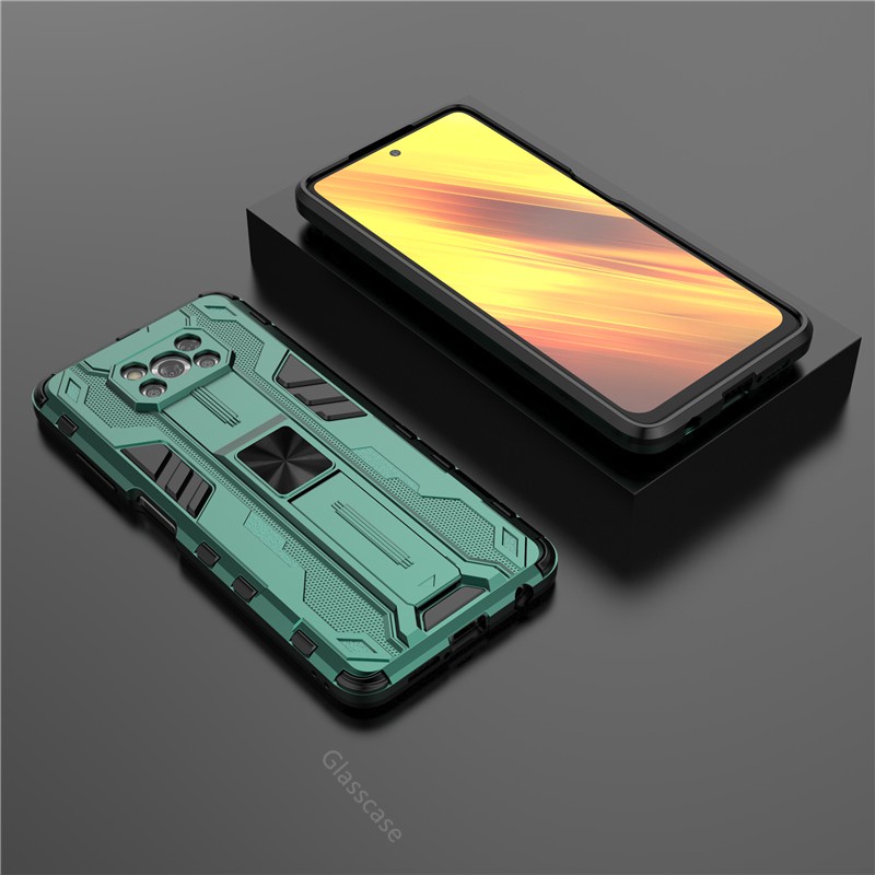 For Xiaomi Poco X3 Pro X3 NFC Pocophone X3 Pocox3 Pro X3Pro Phone Case 3D Armor Shockproof Stand Holder Protection Bracket Hard Bumper Back Cases Cover