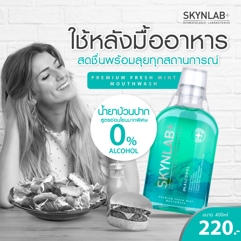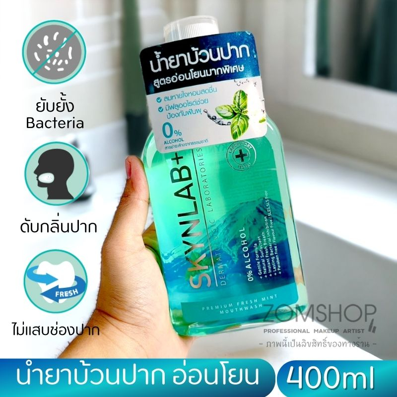 สีเขียว【ขวดใหญ่400ml.】Skynlab 【น้ำยาบ้วนปาก】ลดกลิ่นปาก Skynlab Premium Fresh Mint Mouthwash