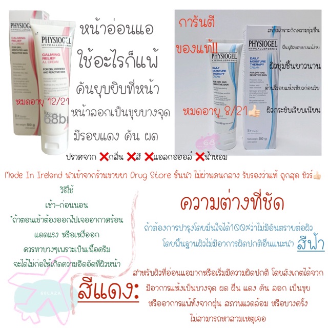 หมดอายุ 01-12/2026 Physiogel AI Cream แก้ผื่น ลดคัน ลดอักเสบ ผิวหน้า (สีแดง), Moisture ผิวชุ่มชื้น (สีฟ้า) 50 กรัม