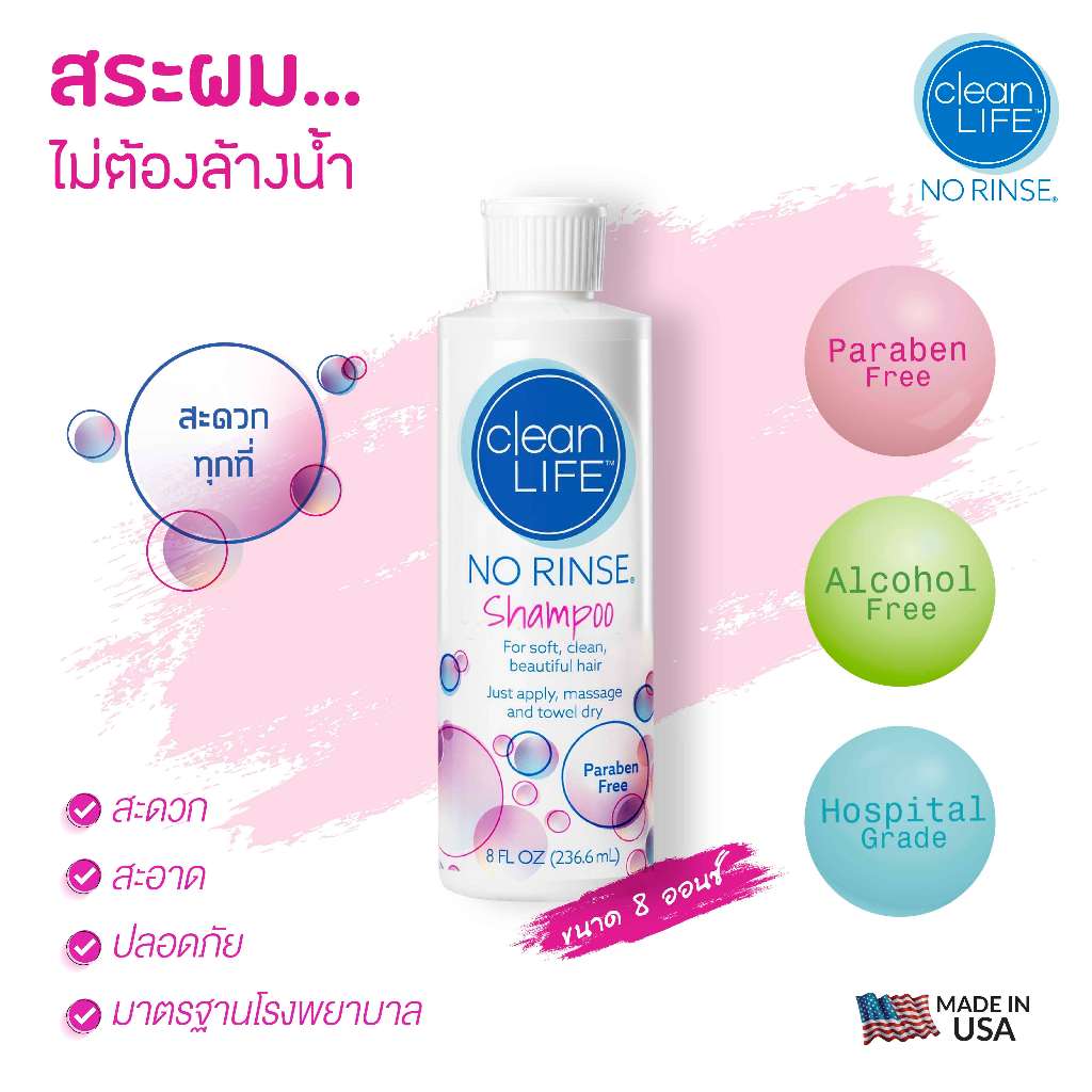 No Rinse Clean Life แชมพู ไม่ต้องล้างน้ำ 236 มล. ดรายแชมพู dry shampoo ผู้ป่วยติดเตียง จากอเมริกา