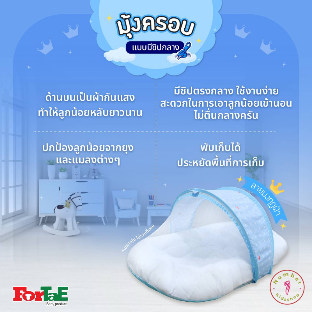 ForTaE(ฟอร์เต้) !!เฉพาะมุ้งอย่างเดียว มุ้งครอบที่นอนแบบมีซิปกลาง มุ้งครอบ มุ้งครอบที่นอนเด็ก NA005 มุ้งเปล่า ไม่รวมที่นอ
