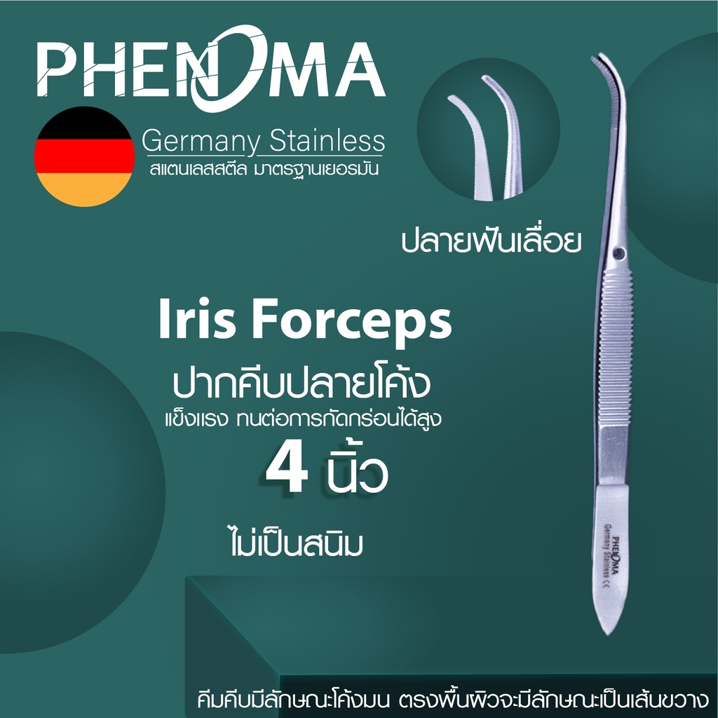 Forcep ปากคีบสแตนเลส PHENOMA Germany Stainless Steel เกรดทางการแพทย์ ฟอร์เซป คีมคีบ คีมจับเนื้อเยื้อ มาตรฐานโรงพยาบาล