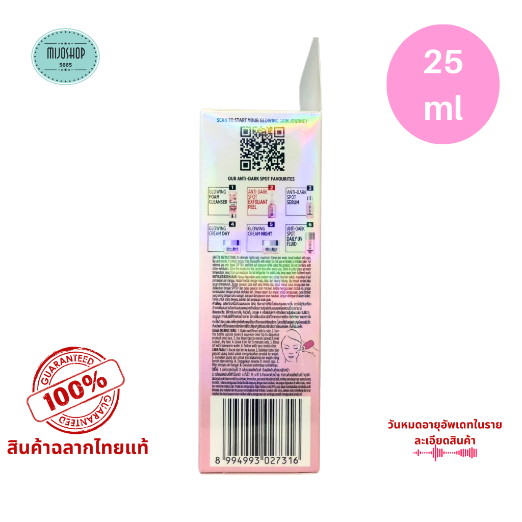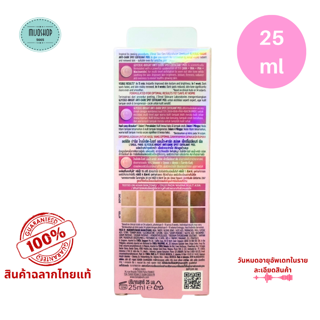 ลอรีอัล Loreal Glycolic-Bright Anti-Dark Spot Exfoliant Peel 25 ml. มาส์ค เพื่อผิวกระจ่างใส