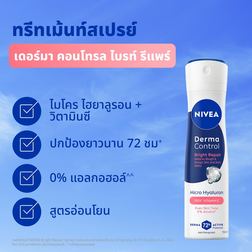 นีเวีย เดอร์มา คอนโทรล ไบรท์ รีแพร์ สเปรย์ 150 มล. NIVEA ครีมรักแร้ สเปรย์โรลออน deodorant