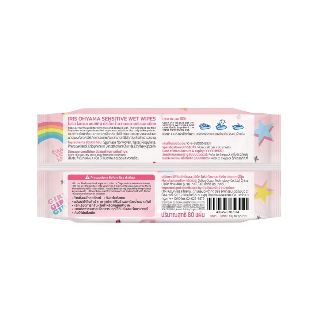 Iris Ohyama ไอริส โอยามะ ผ้าเช็ดทำความสะอาดผิวแบบเปียก สูตรอ่อนโยน 80 แผ่น